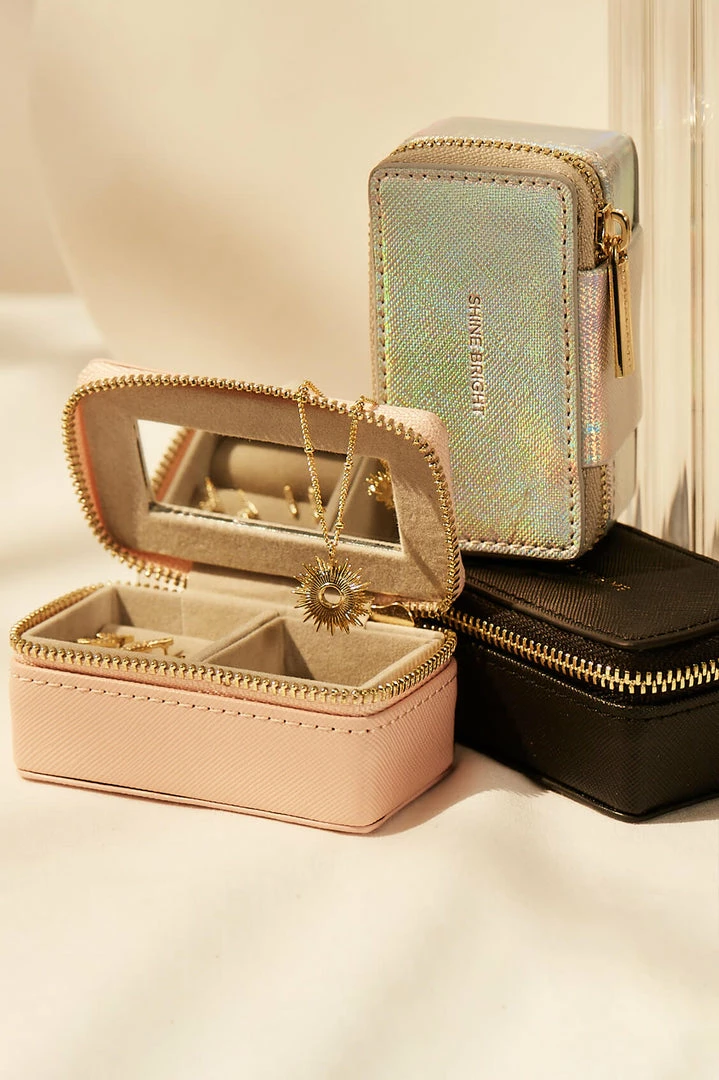 Perfectly Portable and finished with signature Estella Bartlett hardware, this ‘Shine Bright’ jewellery box is surely the cutest way of keeping your treasures safe on the go. With enough room for earrings and rings, a compartment for necklaces and finished with a handy built in mirror.