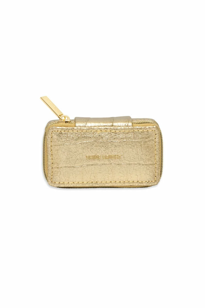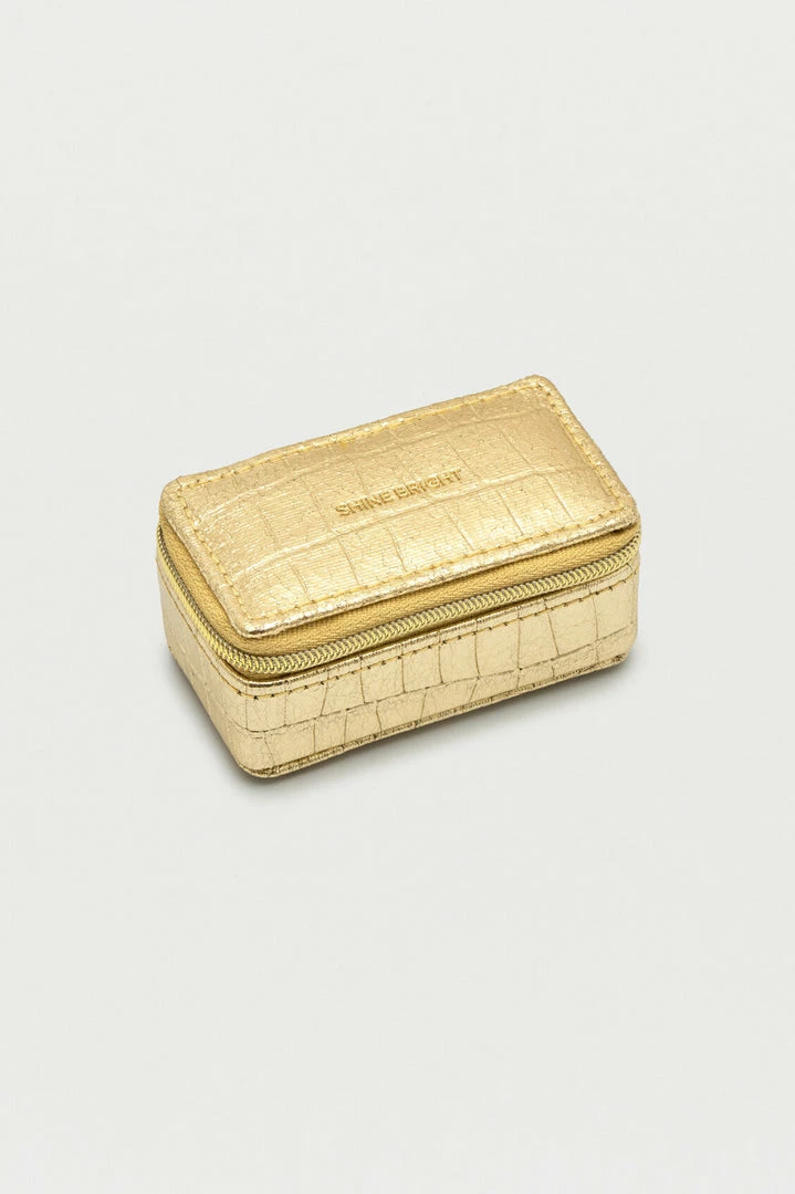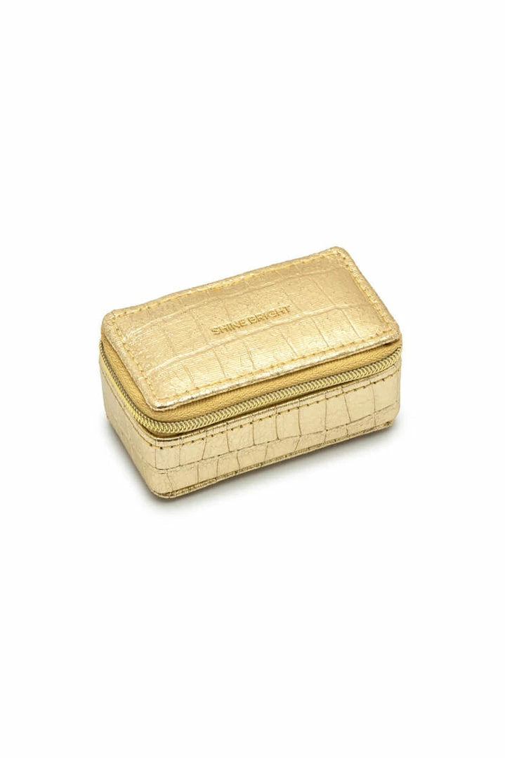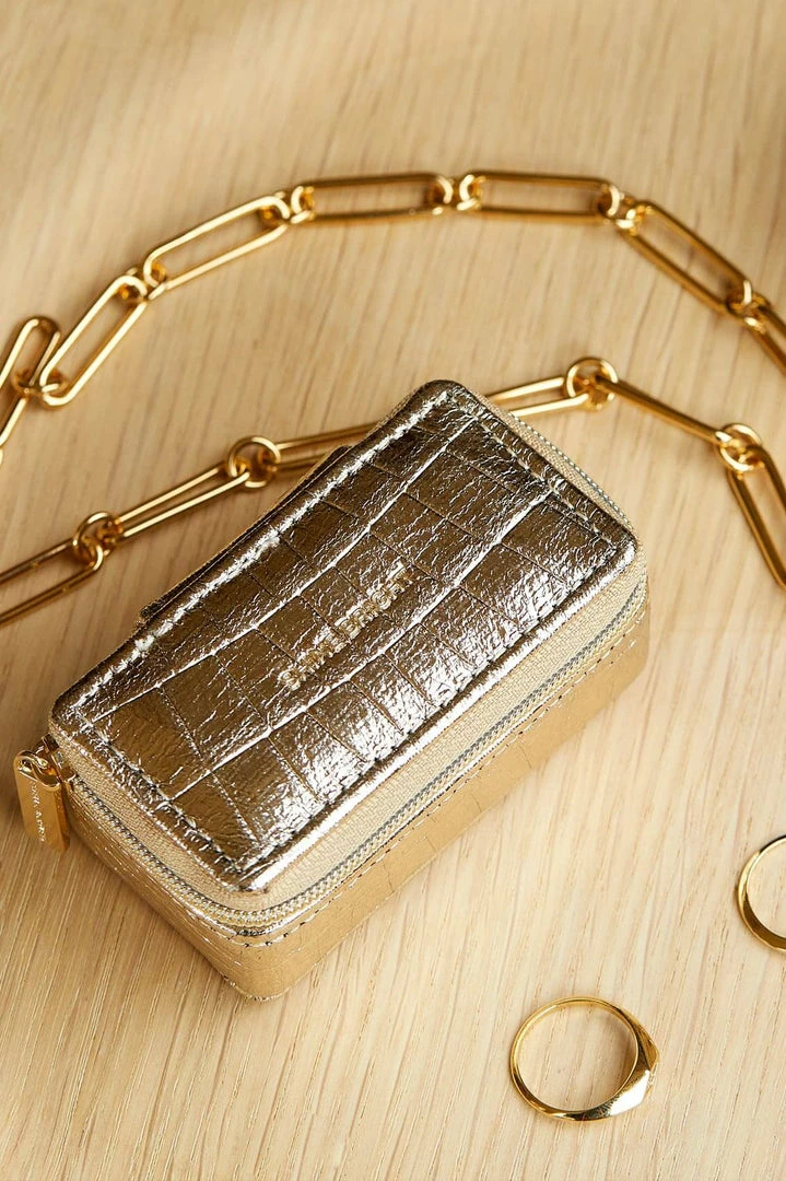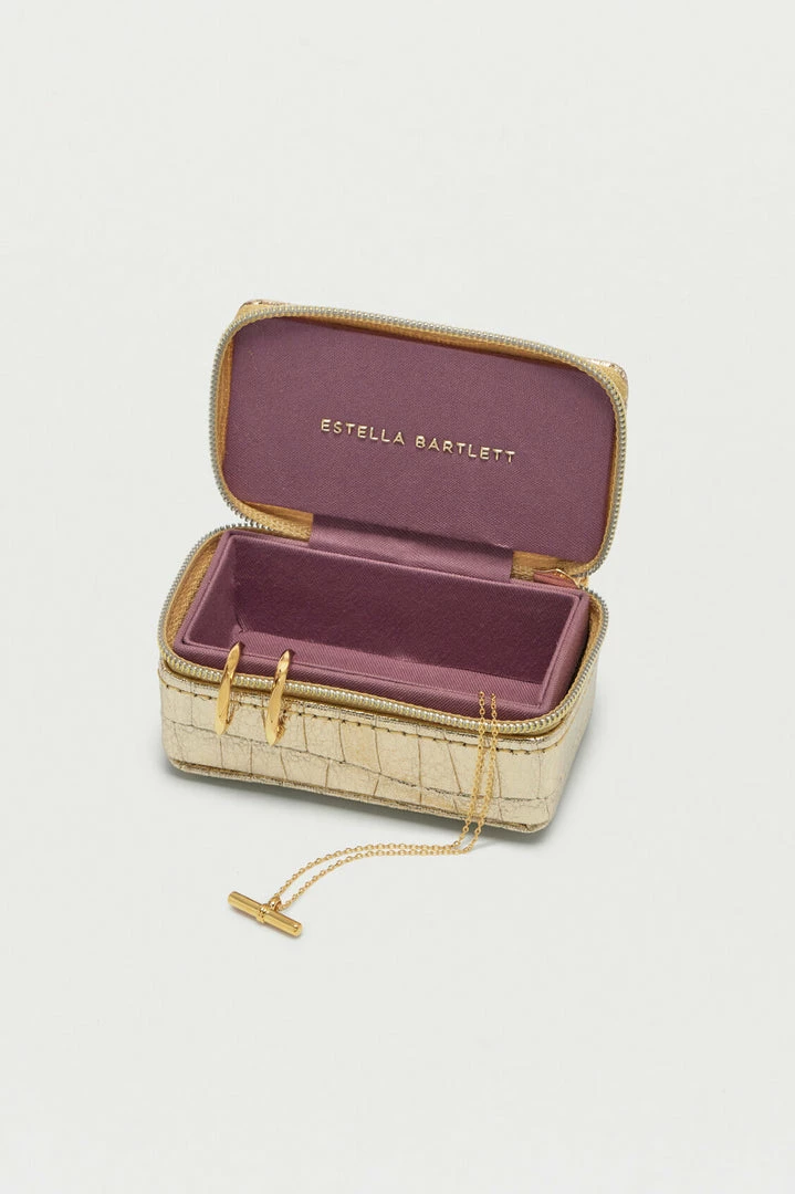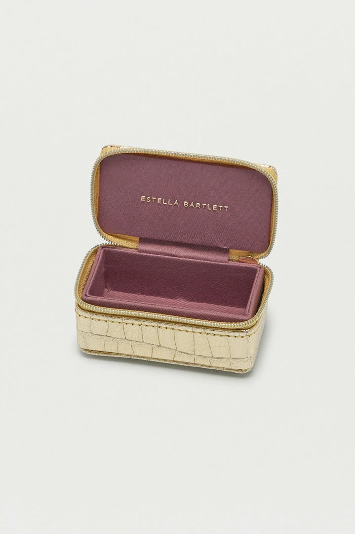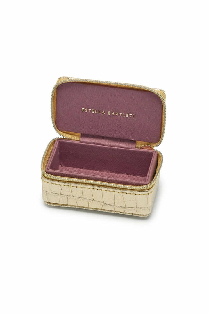 With a singular protective compartment the ideal size for your earrings, necklaces, or rings and finished in a stylish croc-effect metallic gold, this jewellery box is the perfect accessory for taking your most loved treasures wherever you go.