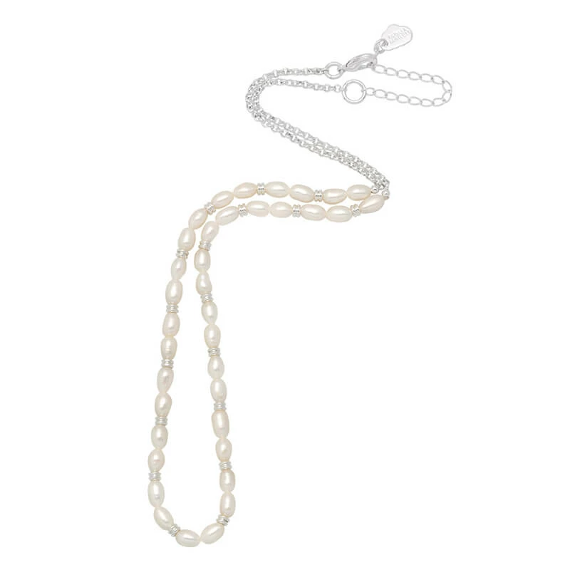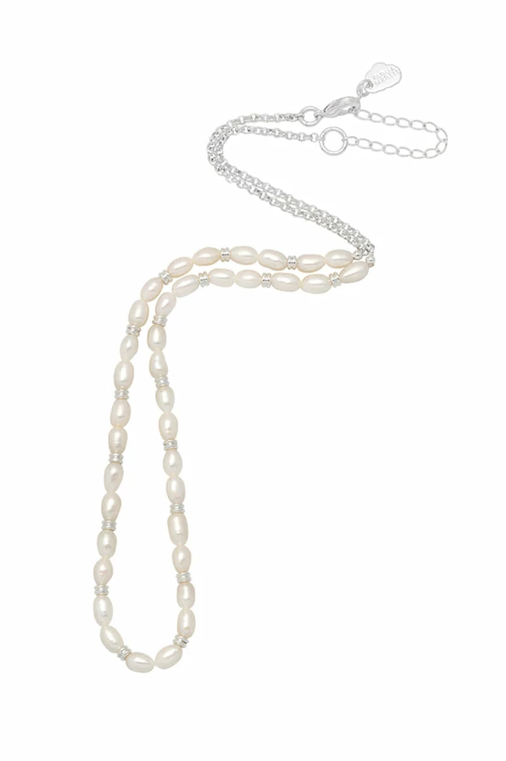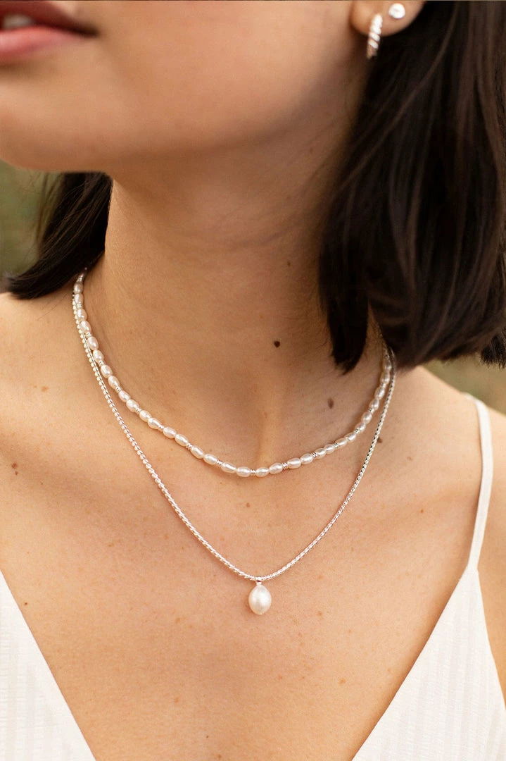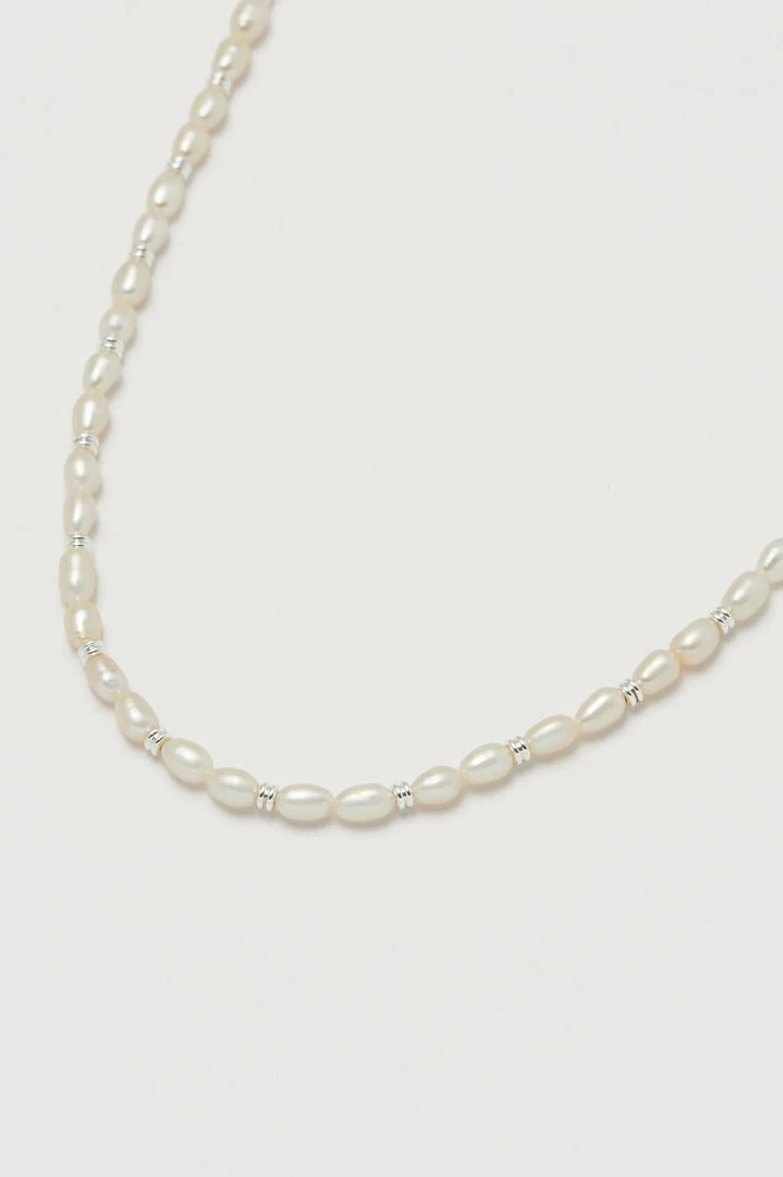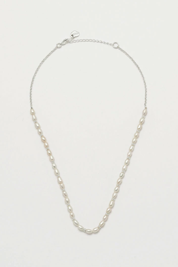 Exuding elegance, this Baroque Pearl Beaded Necklace features a delicate string of natural peals interspersed with minimalist silver plated beads. Sleek and stylish, pair with a tasteful pair of our Pearl Stud Earrings for the complete look.