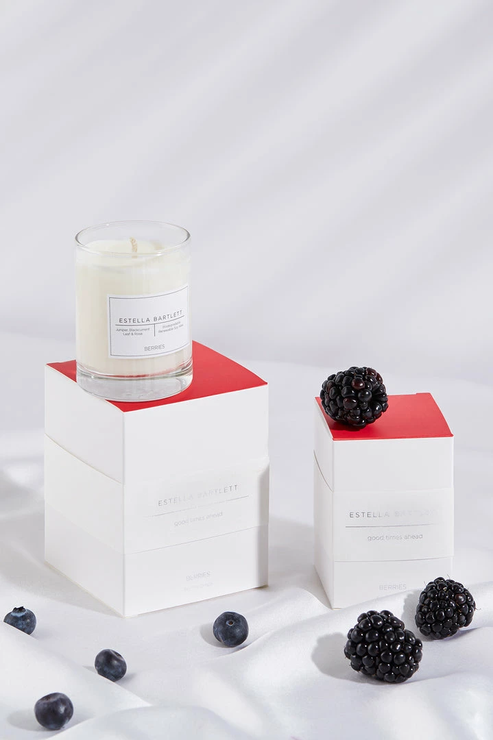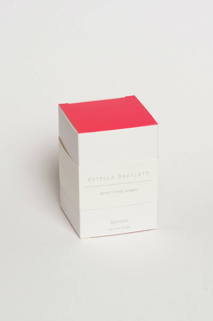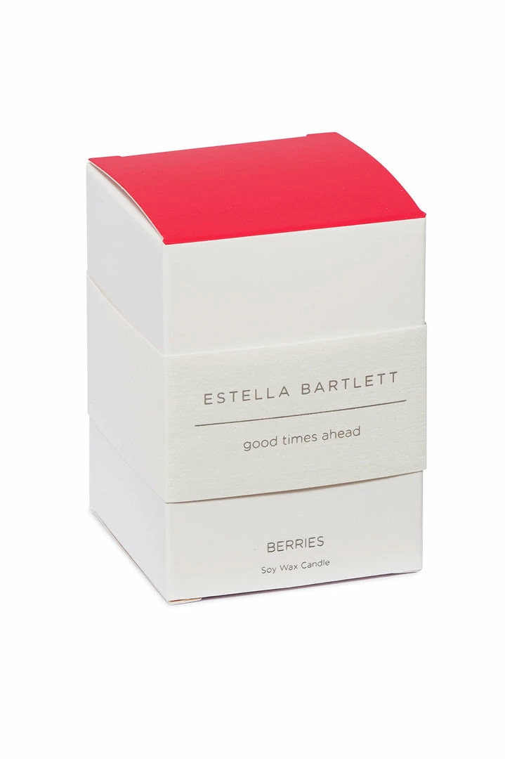 Introducing Estella Bartlett Home, starting with our elegant candle collection. Scented with berries, this small soy wax candle will fill your home with a beautiful, fruity fragrance. Neatly packaged in a box with the positive message ‘Good Times Ahead’, this candle makes the perfect gift, or a luxurious treat for yourself! The small candle has an approximate 15 hours burn time.
