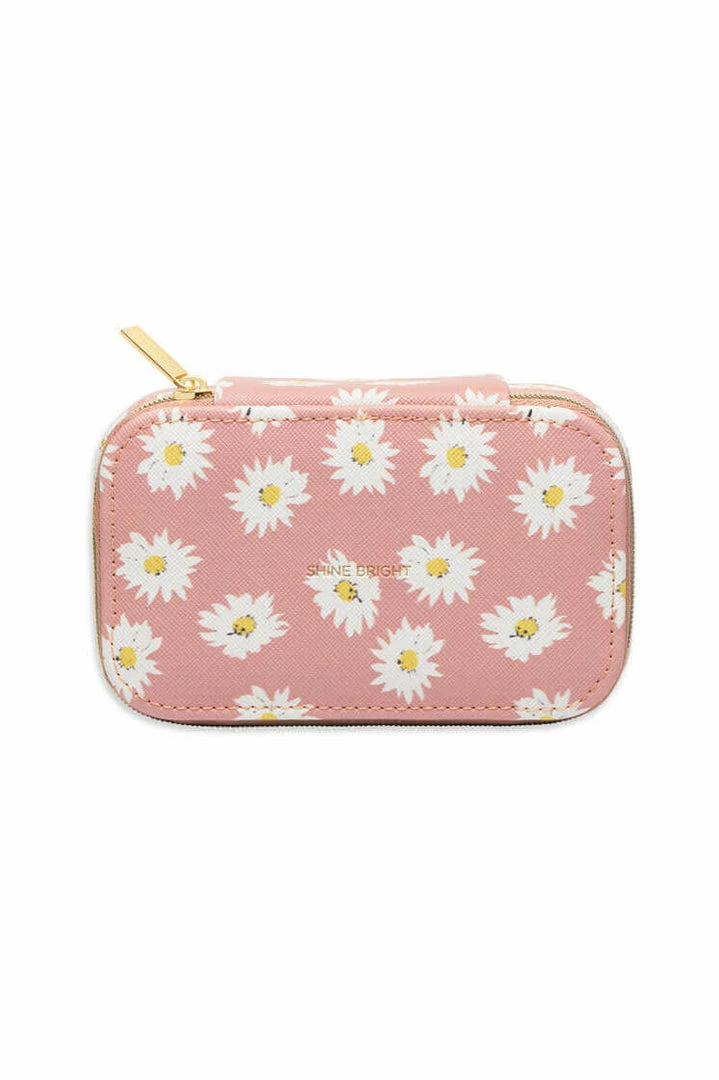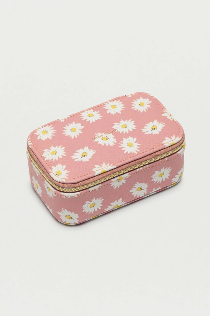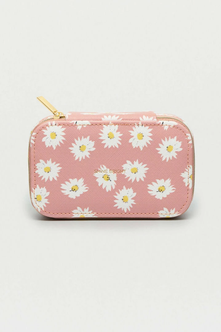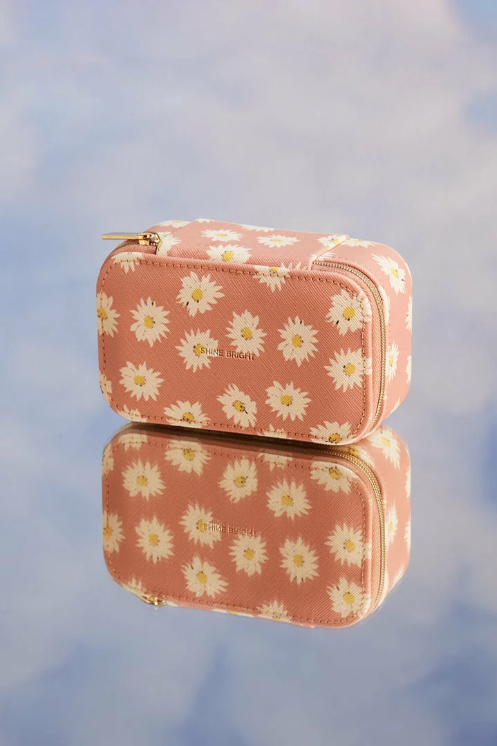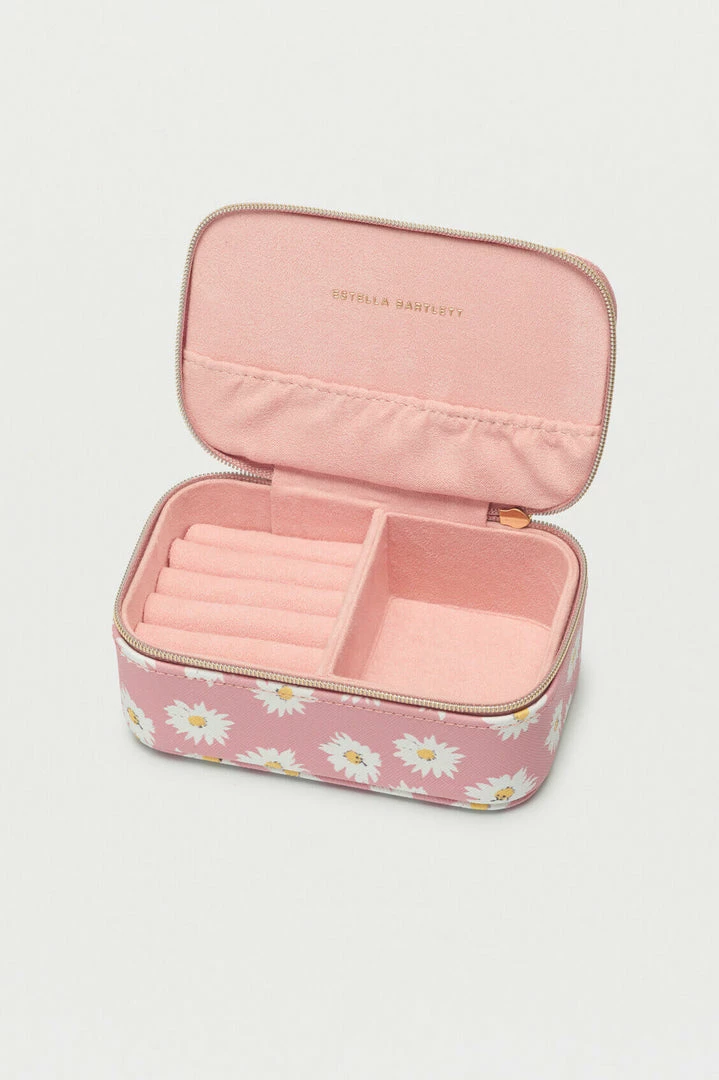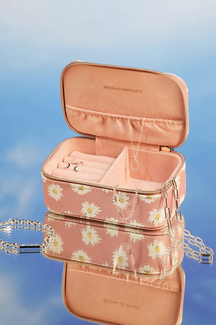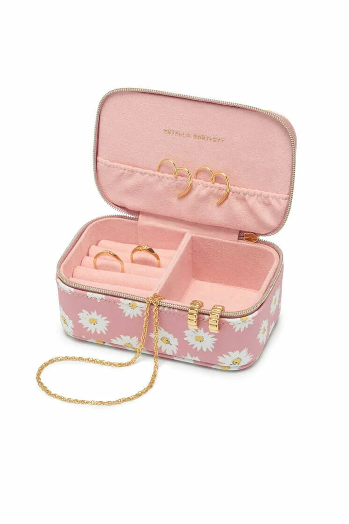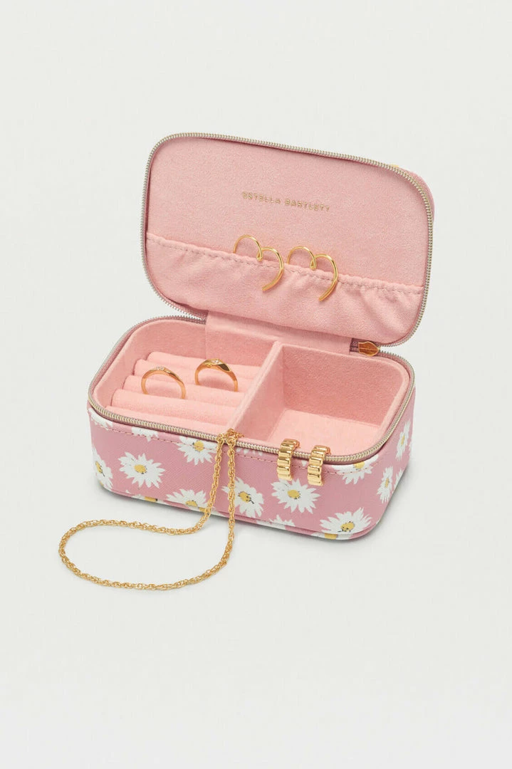 With protective compartments for your earrings, bracelets and necklaces this jewellery box is perfect for taking your most loved treasures wherever you go.Finished in a soft blush wildflower print with the delicate message ‘Shine Bright’. With signature Estella Bartlett hardware.