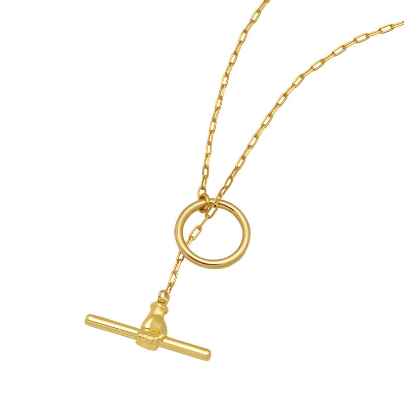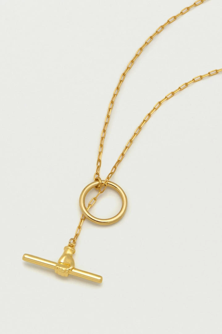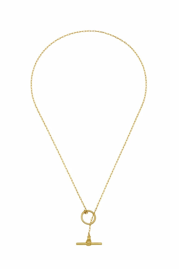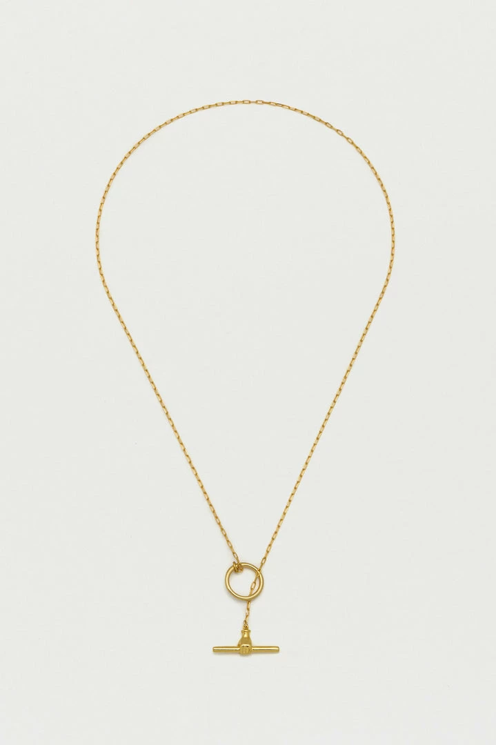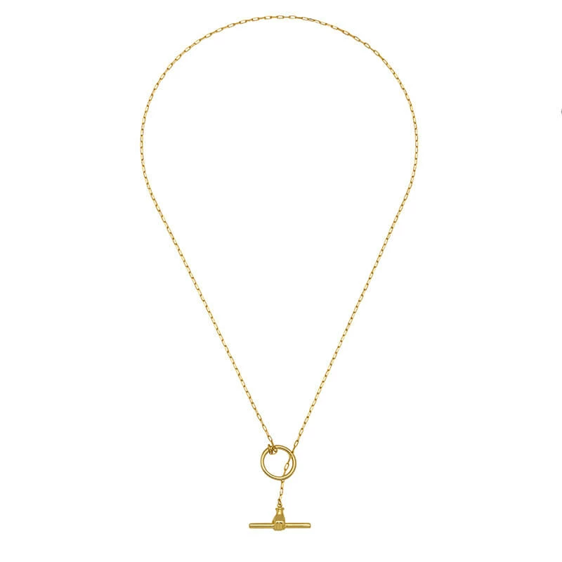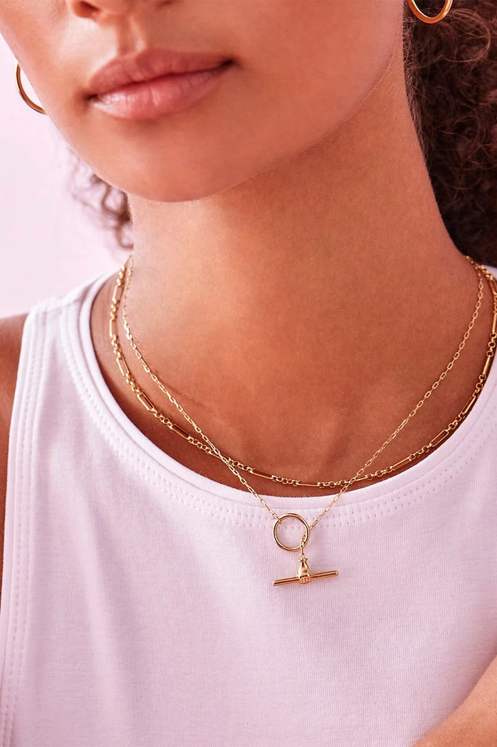 This adjustable T-Bar Link Necklace is the perfect layering length and features a unique hand-clasped t-bar design that will add that finishing touch to any outfit.