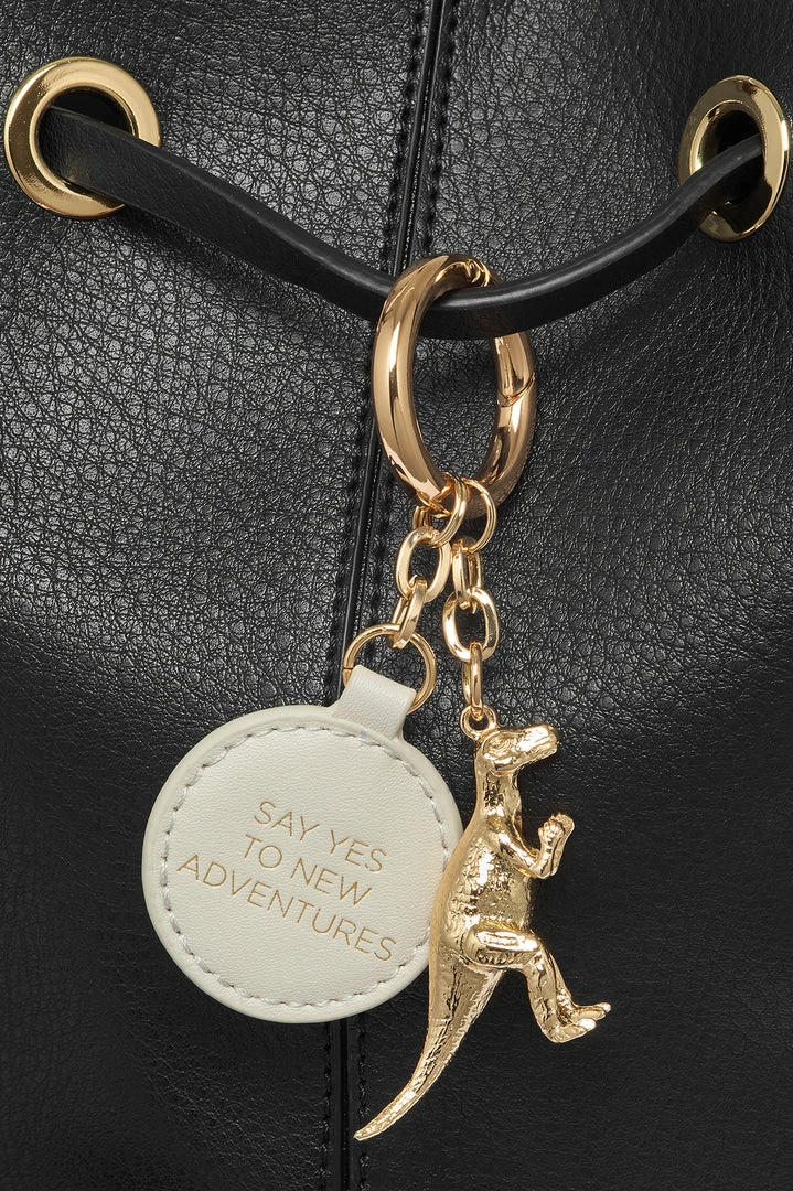 The Copperfield is our minimalist backpack, with gold metal hardware that elevates the look to give it a more luxe feel. Made with an alternative leather that’s vegan friendly, it has one large compartment to store all you daily essentials, and adjustable straps to alter the fit so it’s perfect for you. This Estella Bartlett bag comes with an added gold dinosaur charm and a stone bag tag with the message ‘Say Yes to New Adventures’.
