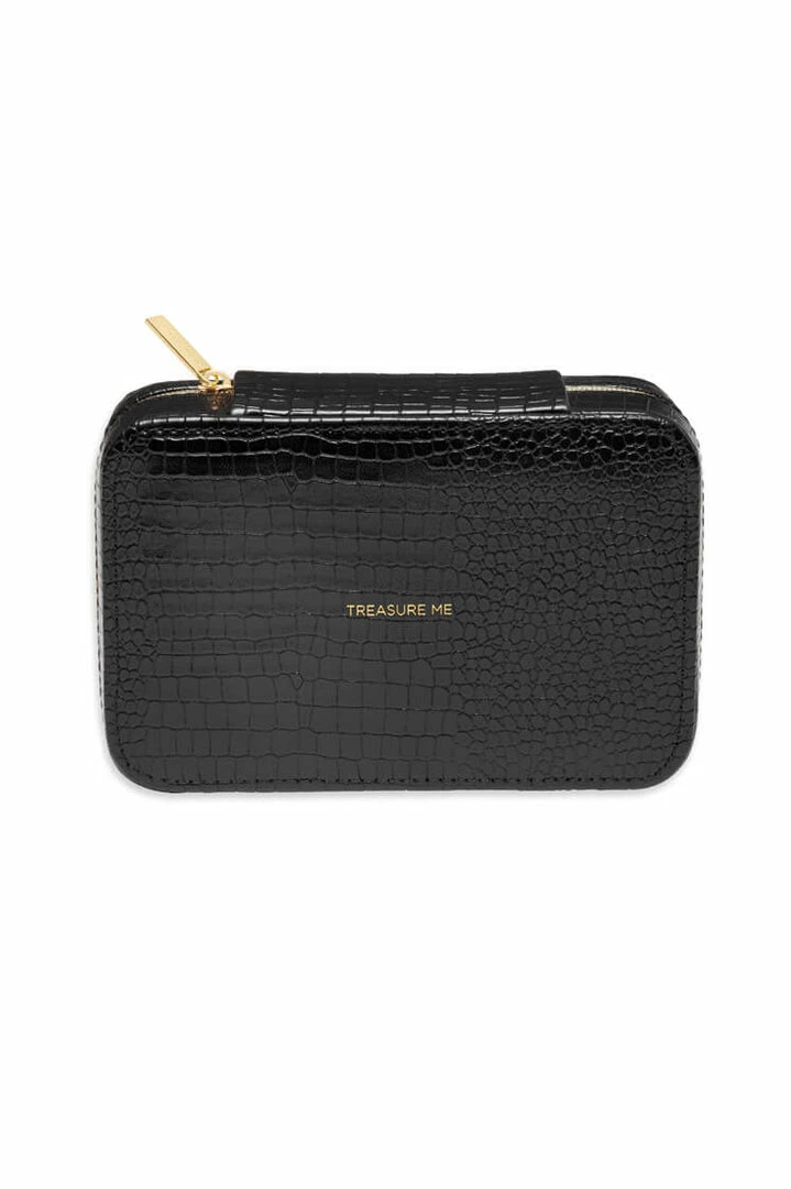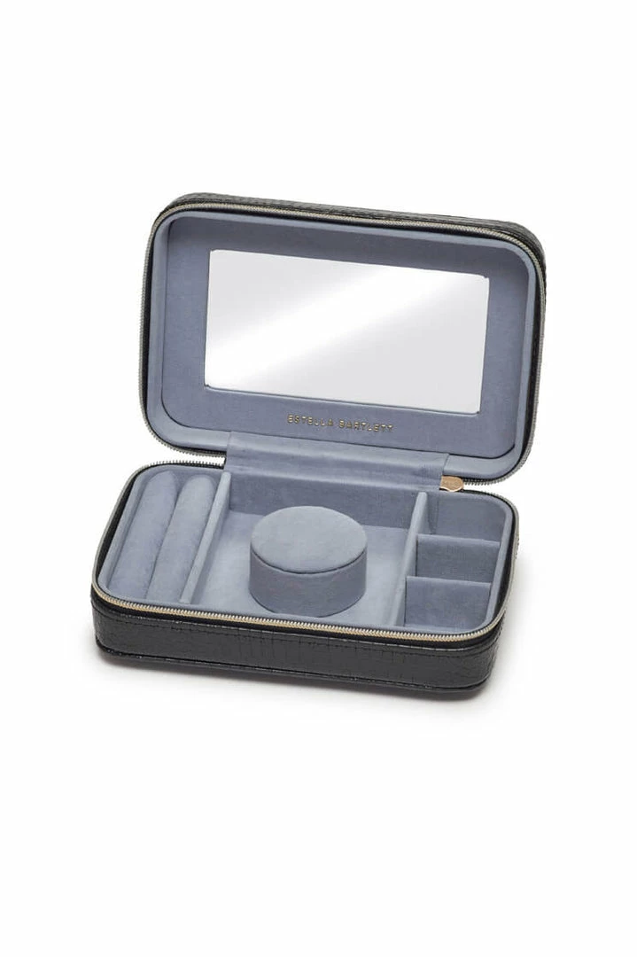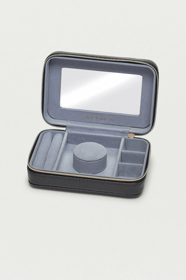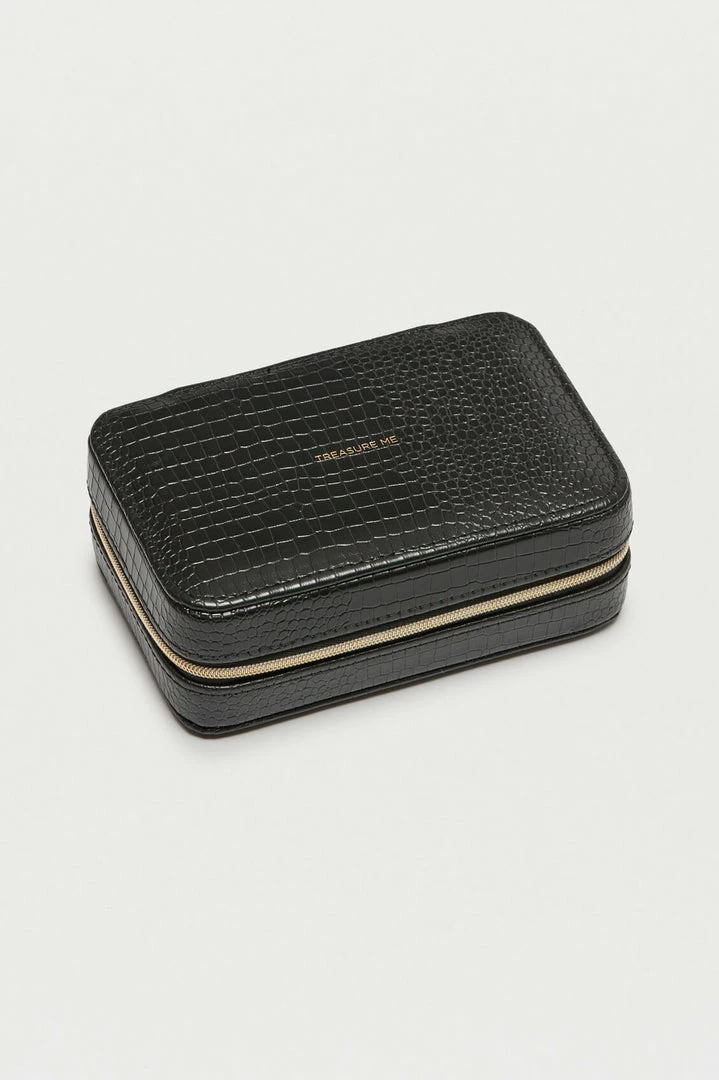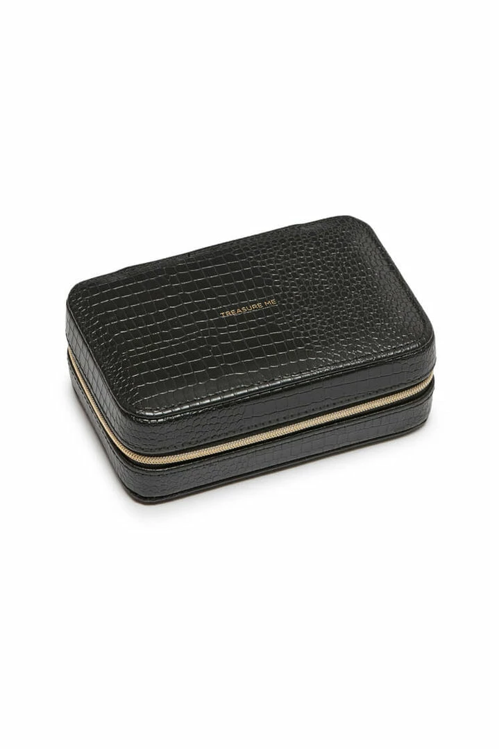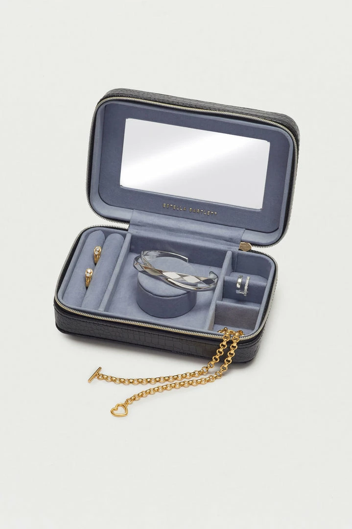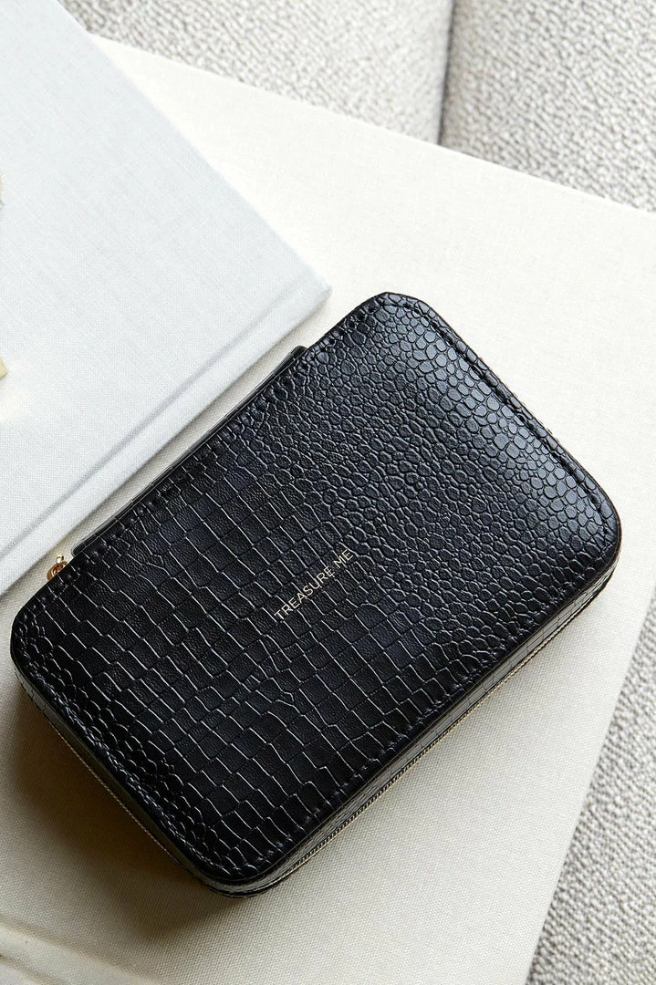 Featuring organised compartments for your earrings, bracelets, necklces and watches and a handy internal mirror for any on-the-go touch ups. Finished in a classic, black croc-effect, this jewellery box is ideal for taking your most loved treasures wherever you go.