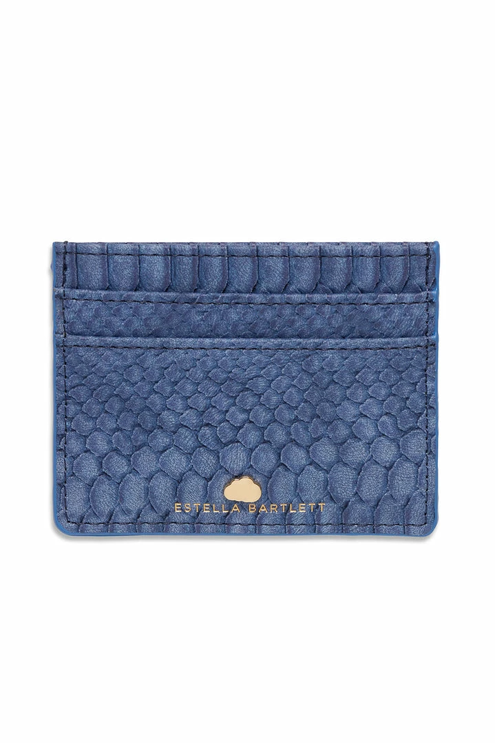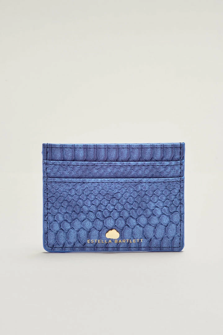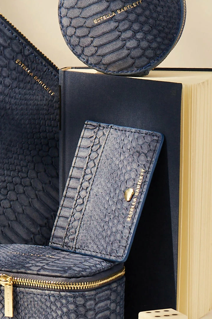 Perfectly sized to slip into your pocket or clutch, this card holder has two slots for your most used cards, plus a central compartment to store bills and loose receipts. With signature Estella Bartlett hardware and finished in a dreamy navy snake print.
