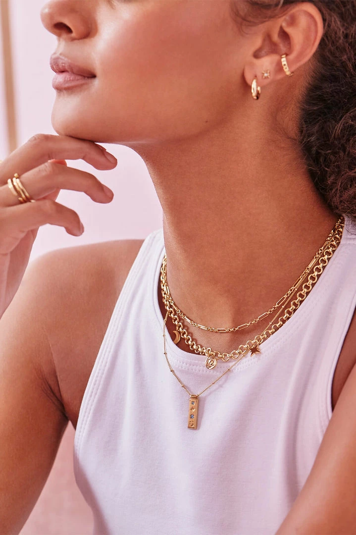 Inspired by the beauty of some of the sky’s most magical elements, this necklace features three delicate pendants attached to a chunky chain and is the perfect design for anyone wanting to achieve a modern, on-trend look.