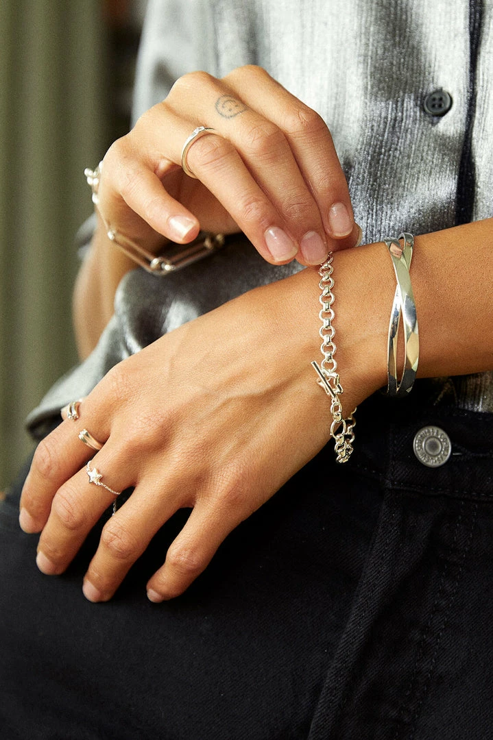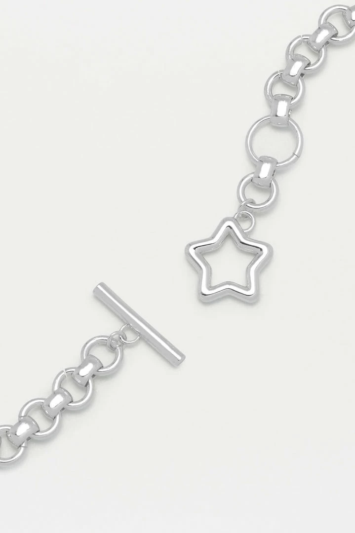 Decorate your wrists with our Chunky T-Bar Link Bracelet, a playful twist on the timeless t-bar style. Featuring a statement chain and twinkling star pendant.