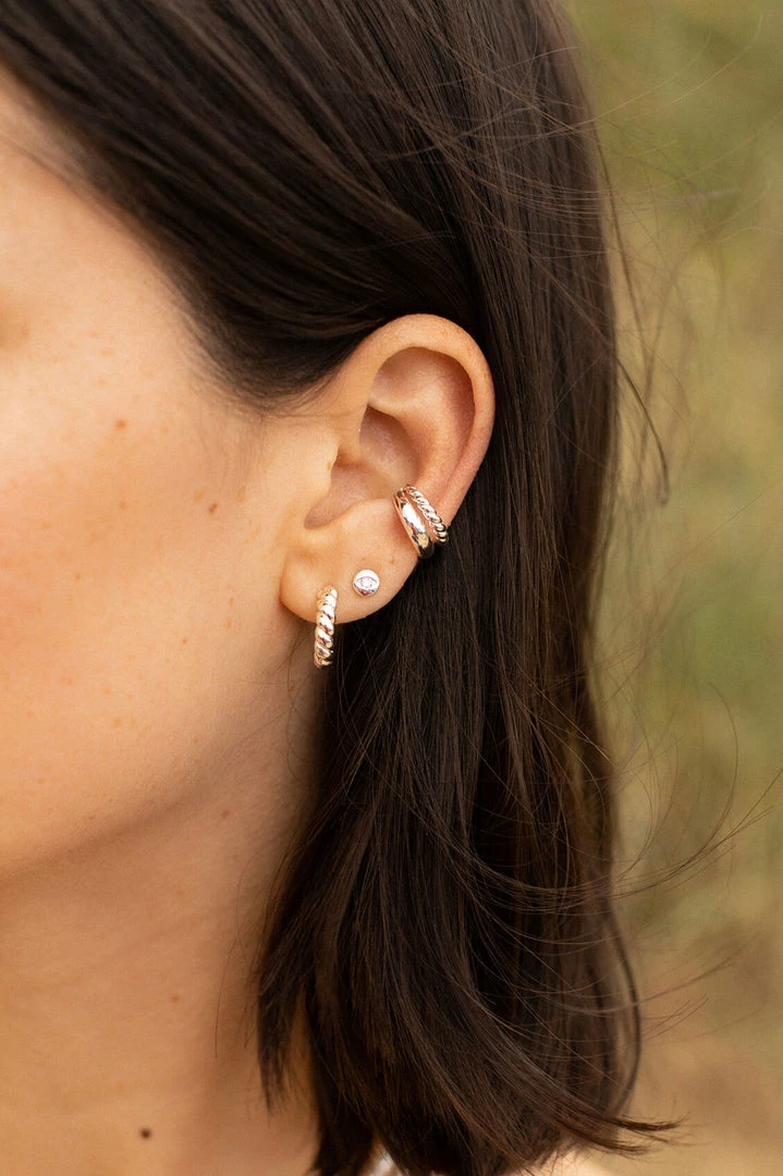 A simple gold hoop is a classic for a reason. Add some texture to your ears with these Chunky Rope Hoop Earrings for a bold yet timeless look. Style solo or stack with other minimalist earrings.