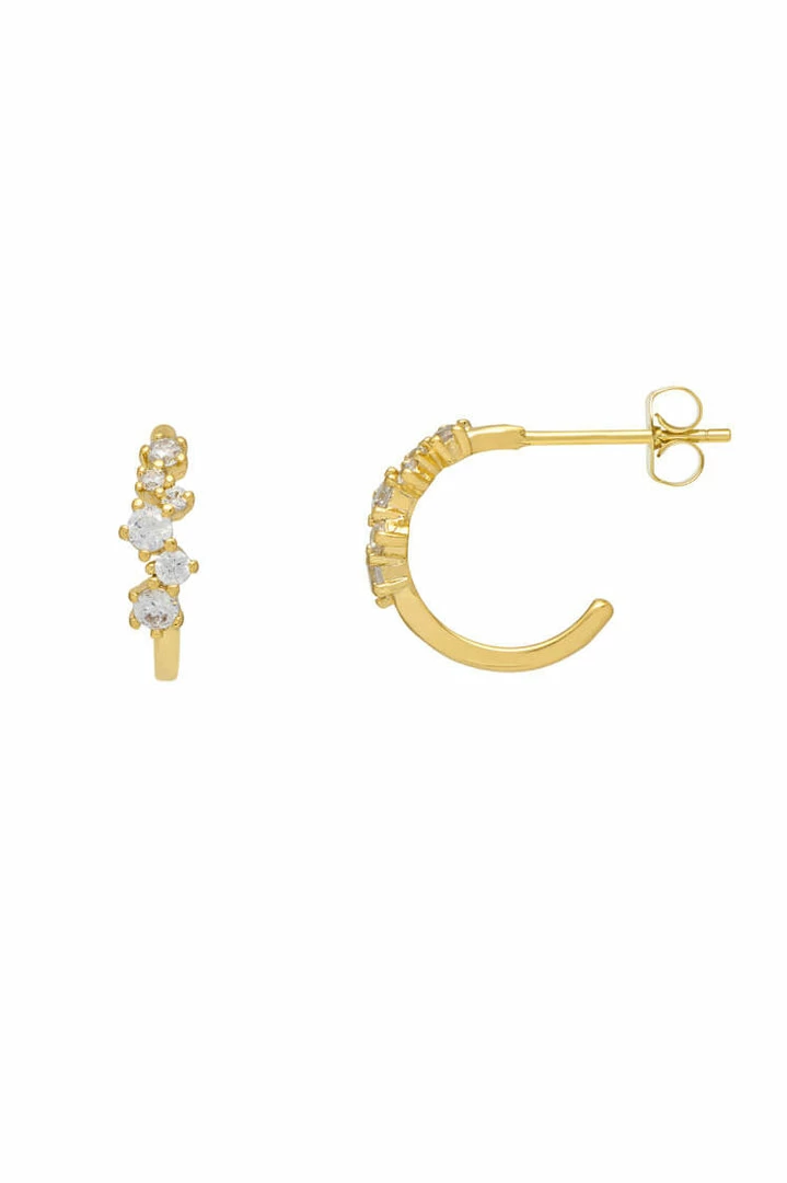 Add a touch of sparkle to your ears with these Constellation CZ Hoop Earrings. Featuring a delicate gold hoop encrusted with a cluster of cubic zirconia details, this pair exudes elegance.