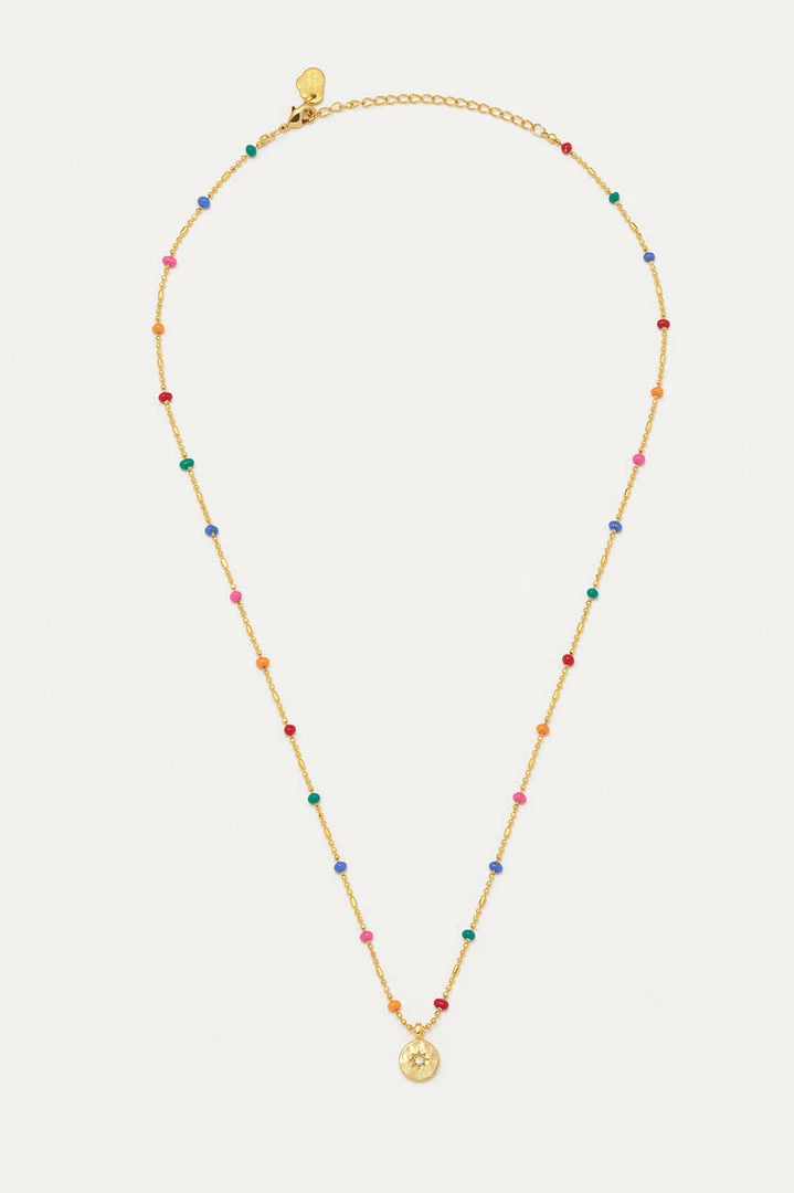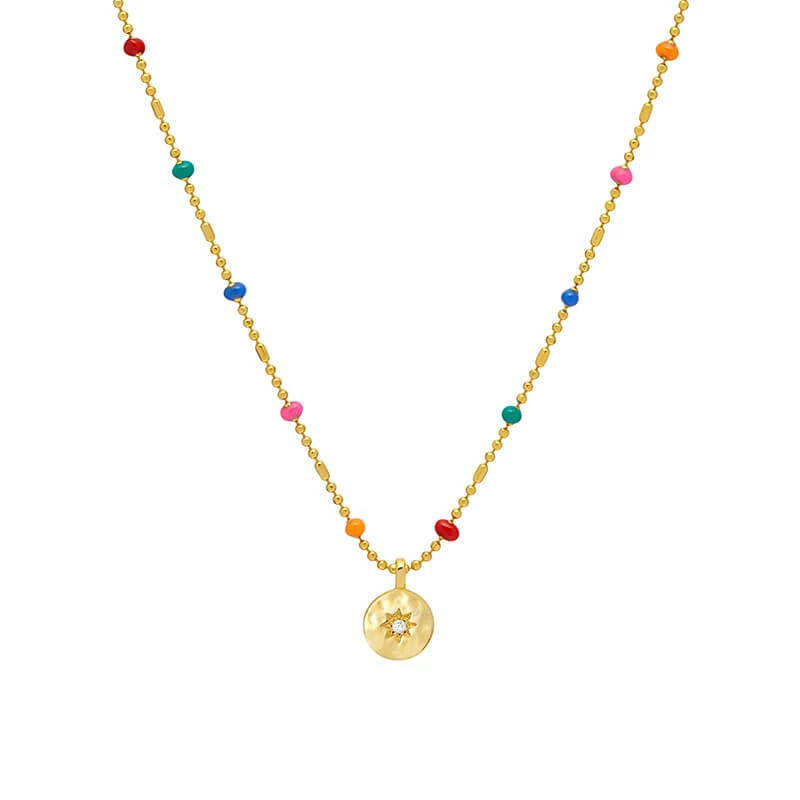 The perfect summer accessory, this CZ Pendant Rainbow Beaded Necklace adds a subtle pop of colour to your neck. Featuring delicate rainbow enamel beads and completed with a dazzling CZ pendant, this necklace will add both elegance and joy to your look.