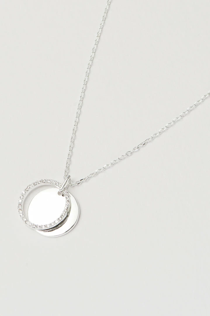 A minimal, everyday pendant with a twist. Our Disc Duo Pendant adds flair to your outfit and can be worn day and night. Featuring a plain circle disc with a cutout pave circle, if we were to describe this necklace in one word, it would be versatile.