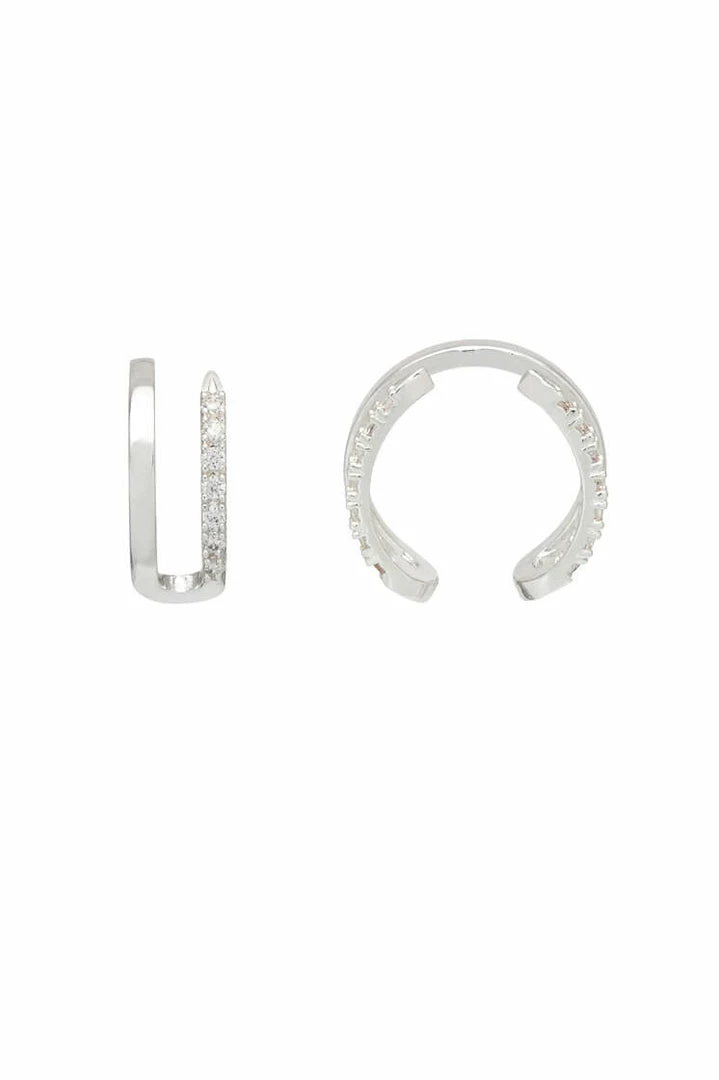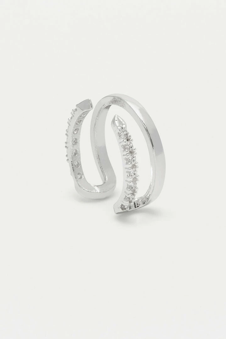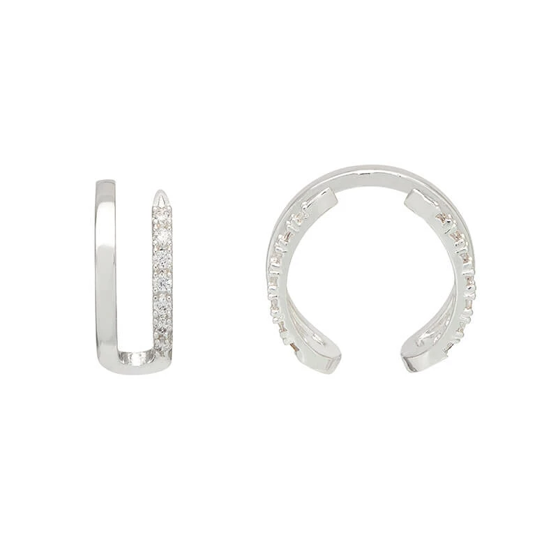 This multi-layered ear cuff creates an even more elevated and chic look by pairing a simple silver band with a sparkling strand of cubic zirconia.