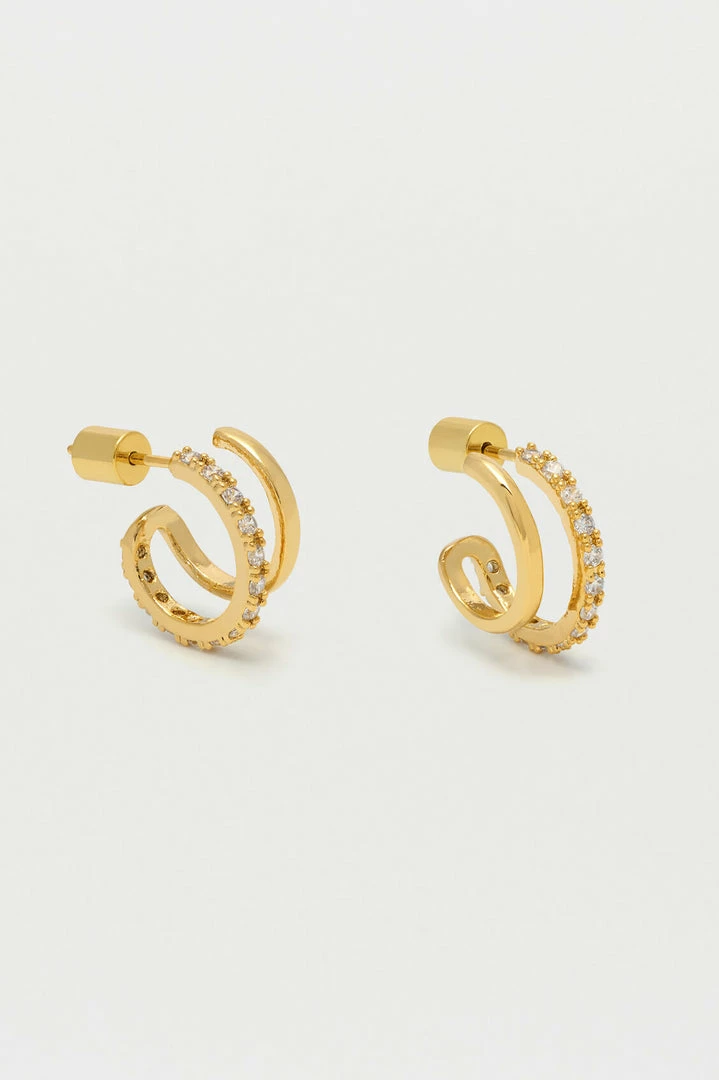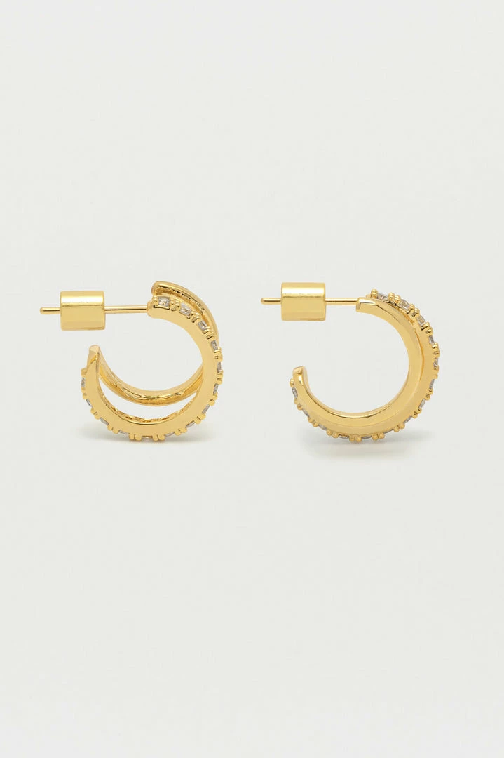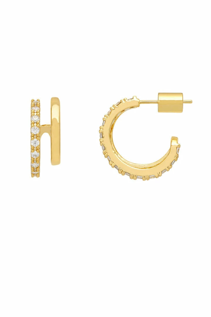 Our Double Hoop Illusion Pave Set Earrings are the perfect way of elevating any outfit with minimal effort. Creating the illusion of a stacked look, this delicate pair features one minimalist, gold hoop and one larger hoop encrusted with cubic zirconia to add a touch of sparkle.