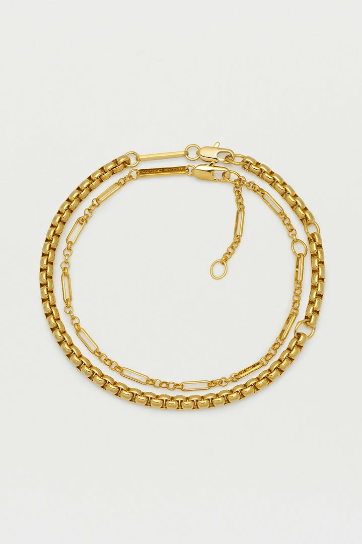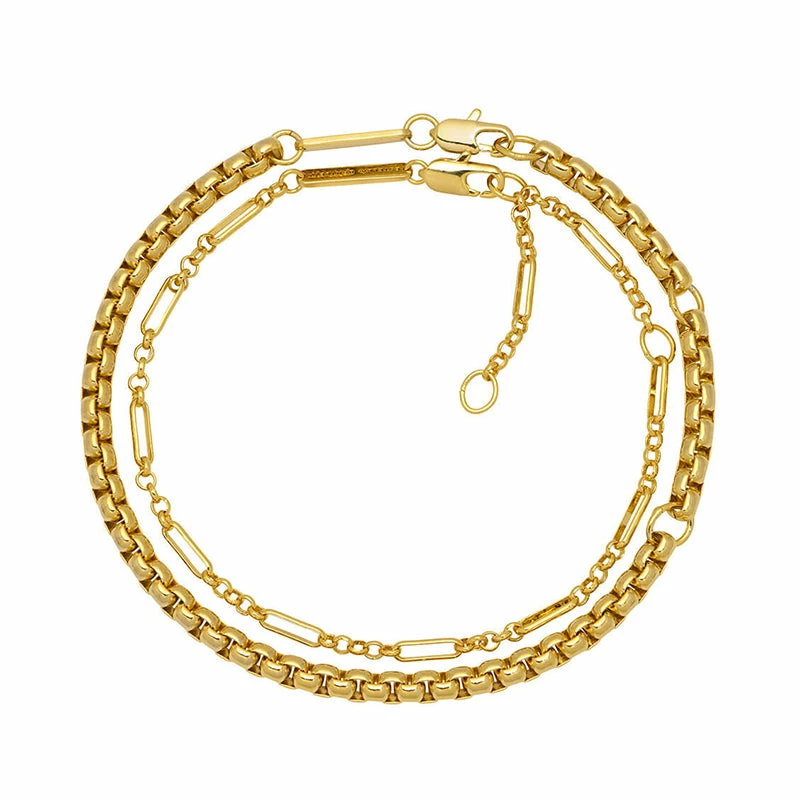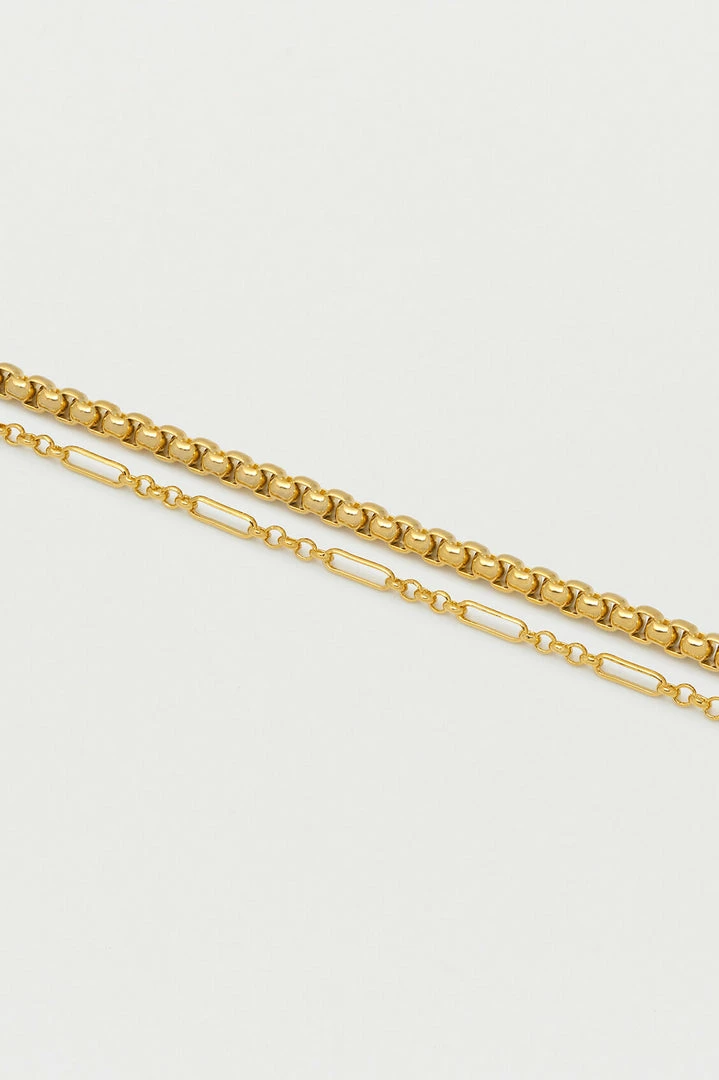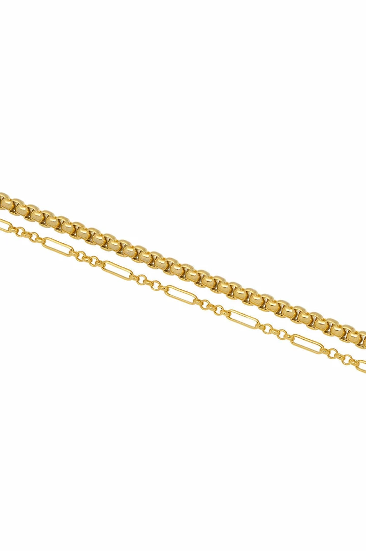 A stunning collection of gold plated chains, this multi-layered bracelet is the perfect accessory for dressing up an outfit with minimal effort. Featuring a delicate gold chain and accentuated with a chunky, rope outer chain this Double Layer Rope Chain Bracelet is the perfect minimalist accompaniment to any outfit.