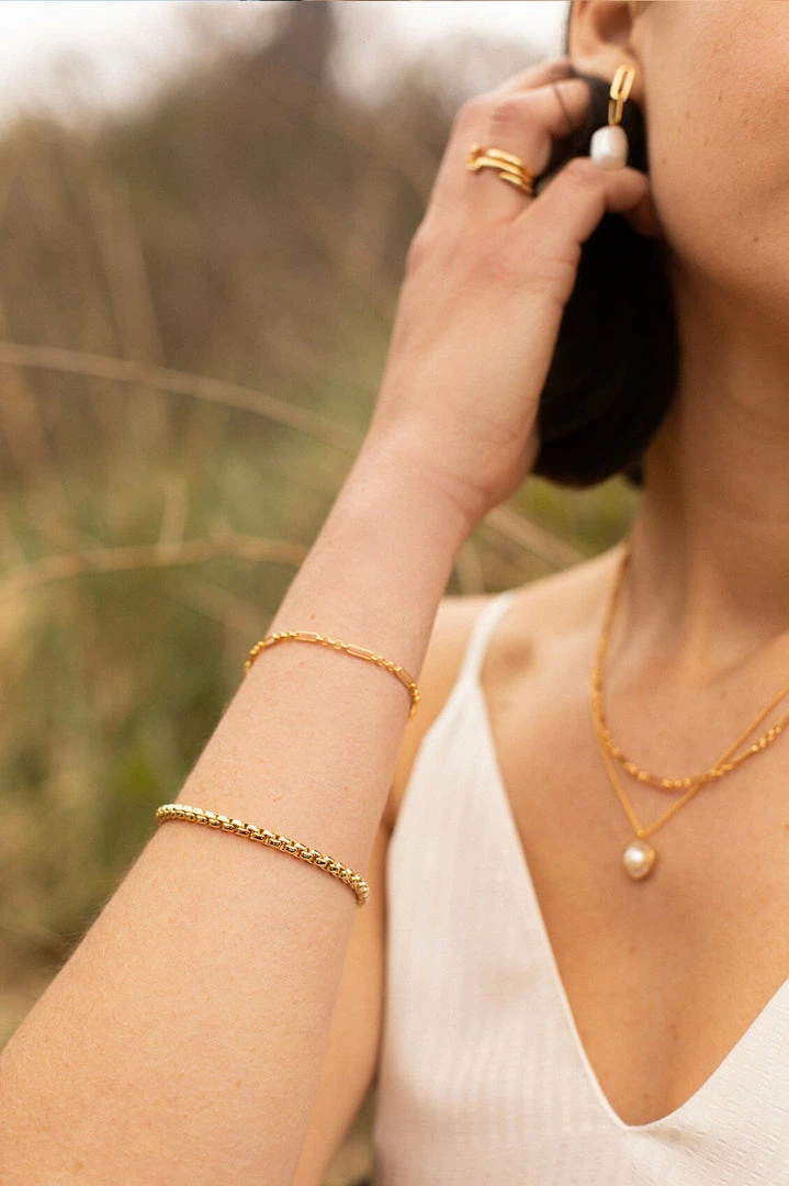 Each Estella Bartlett bracelet arrives delicately cushioned in a grey pouch to safely store and preserve your piece. Read more about our care guidelines here.