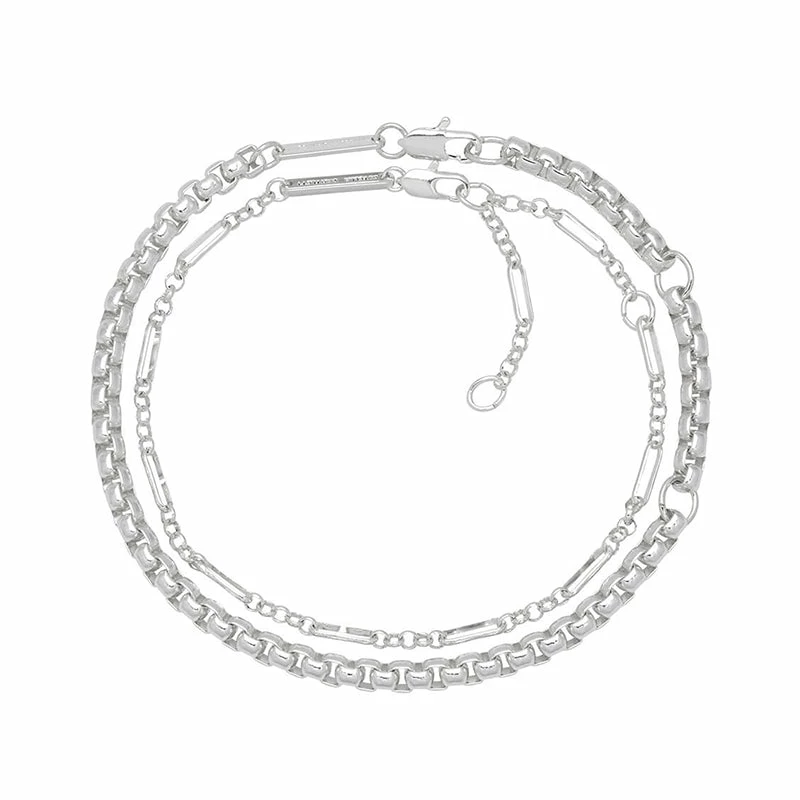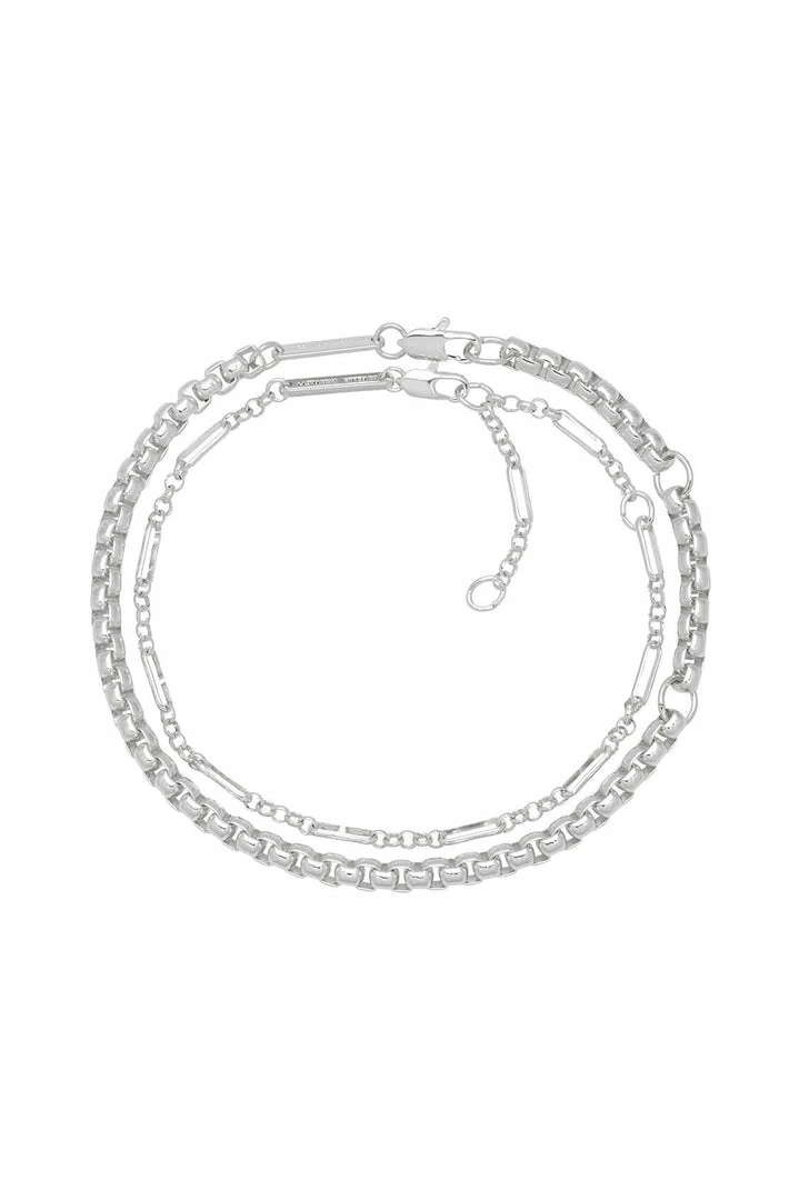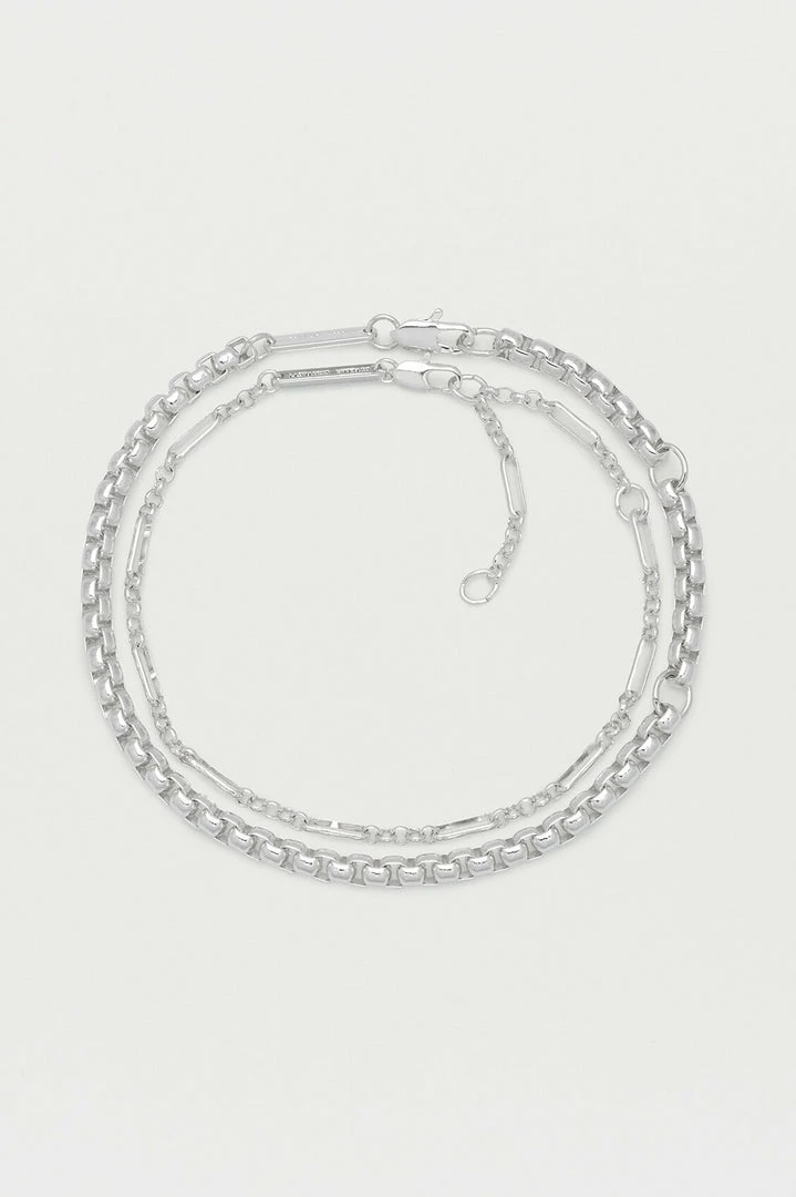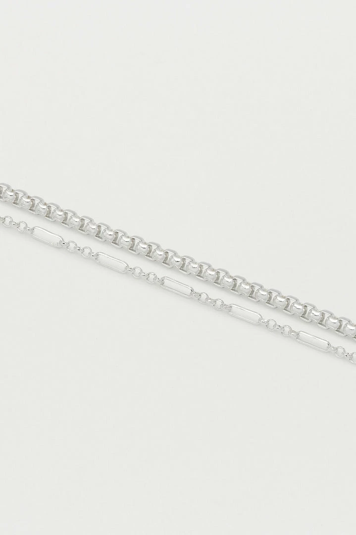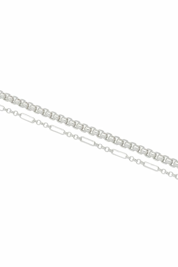 A stunning collection of silver plated chains, this multi-layered bracelet is the perfect accessory for dressing up an outfit with minimal effort. Featuring a delicate silver chain and accentuated with a chunky, rope outer chain this Double Layer Rope Chain Bracelet is the perfect minimalist accompaniment to any outfit.