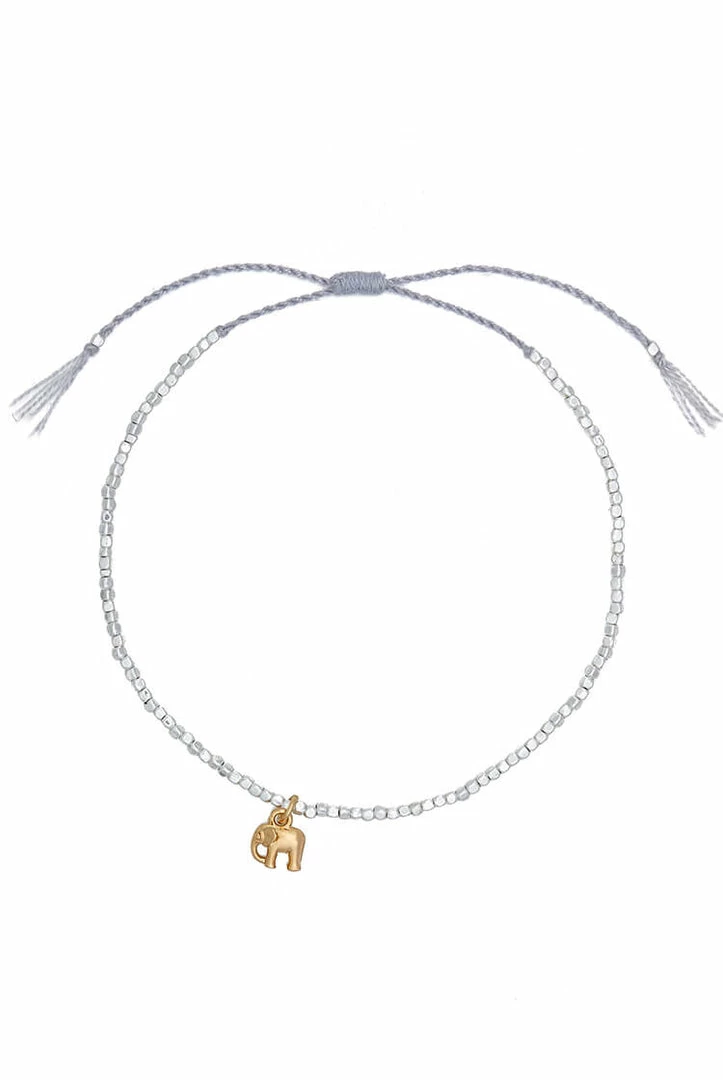 Our classic Louise bracelet is adorned with delicate silver plated beads and completed with an elegant gold plated elephant charm. The slider fastening means it will be suitable for any wrist size!