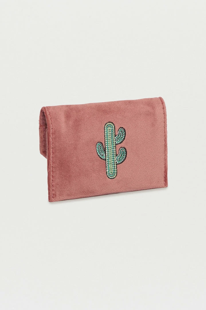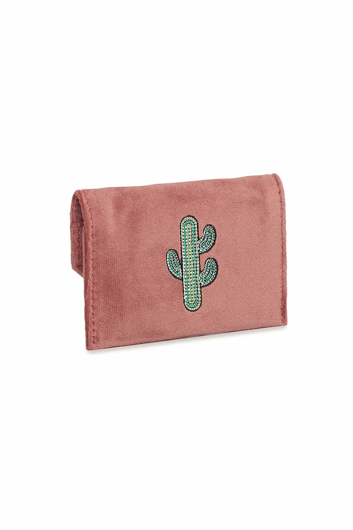 A plush and luxurious card holder to hold and organise all your cards. This update of our original Envelope Card Holder, is embroidered with a cactus patch, making it the perfect spring accessory.