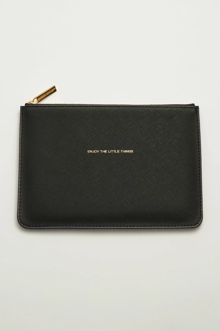 ‘Enjoy the little things’ with this perfect black medium pouch a must have accessory!