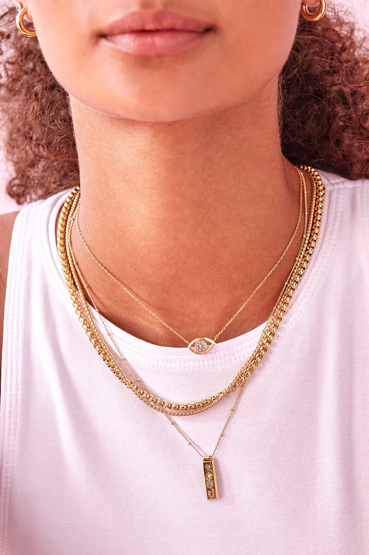 This chic twist on the classic eye motif that has become synonymous with Estella Bartlett designs, features a delicate gold plated eye silhouette emphasised by a central piece of cubic zirconia.