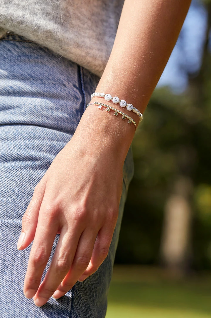 This new addition to our gemstone range features milky Howlite stones which is known for its calming properties. With letter beads spelling out ‘love’ this makes the perfect for yourself or a loved one to show much they mean to you.