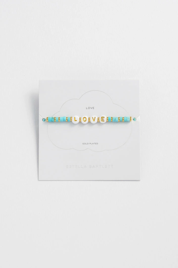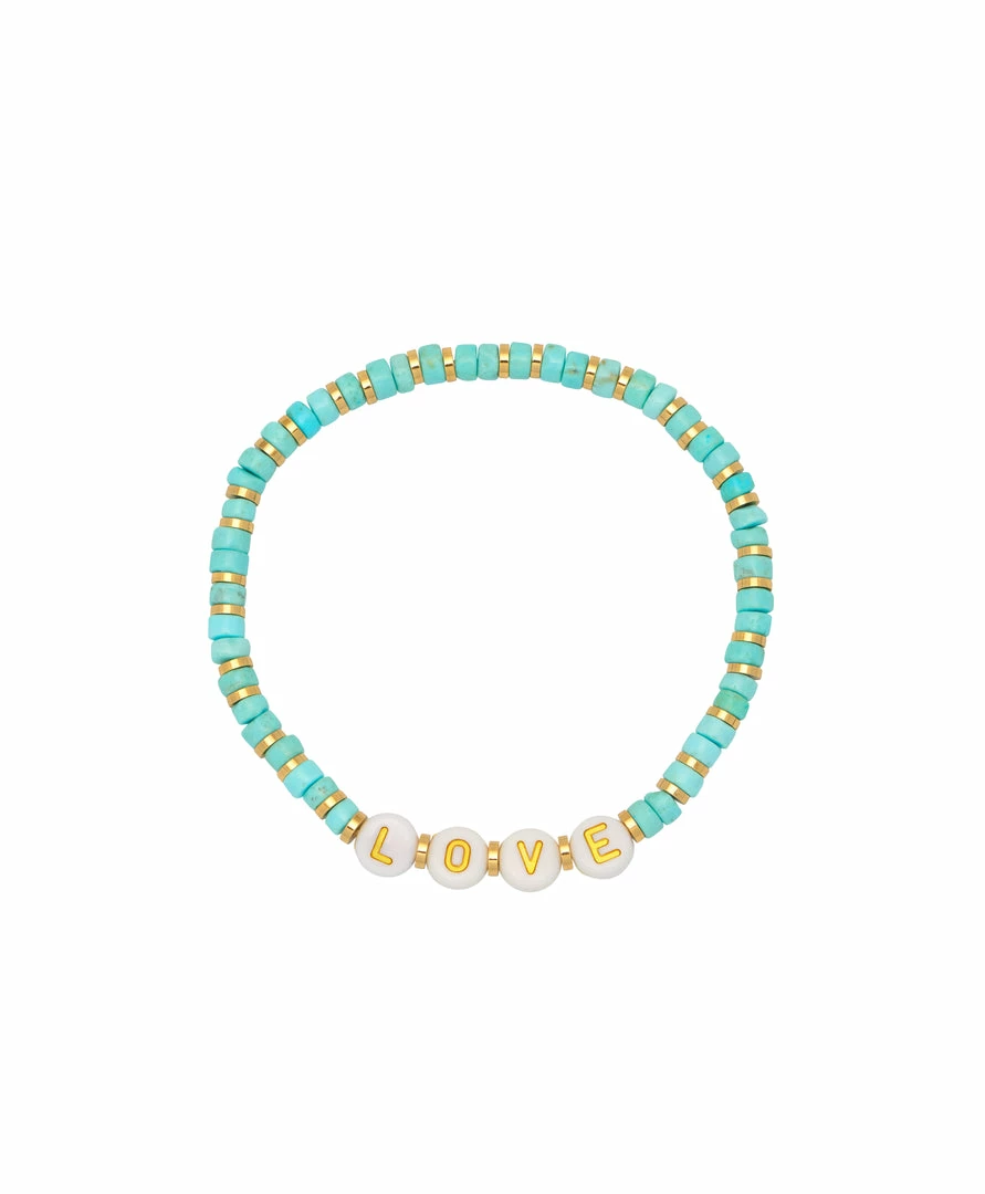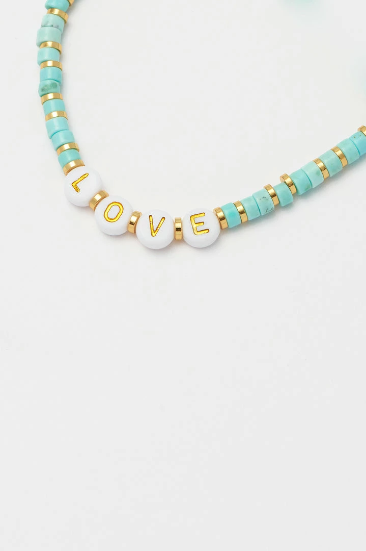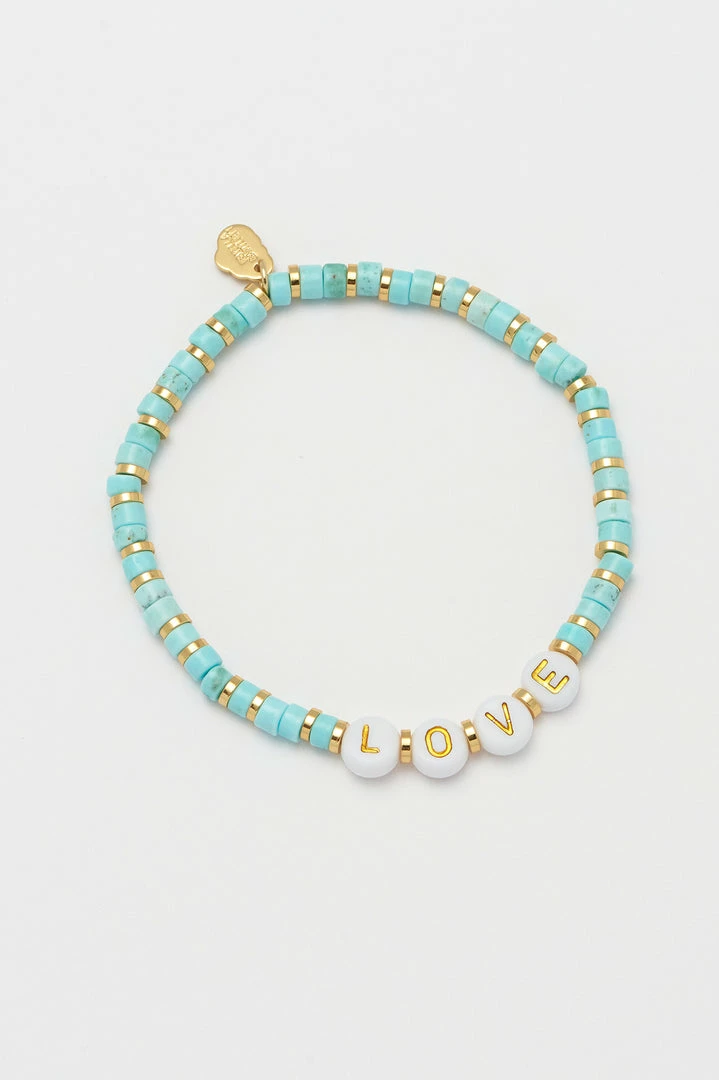 This new addition to our gemstone range features sky blue Amazonite beads which is known for hope and soothing properties. With letter beads spelling out ‘love’ this makes the perfect for yourself or a loved one to show much they mean to you.