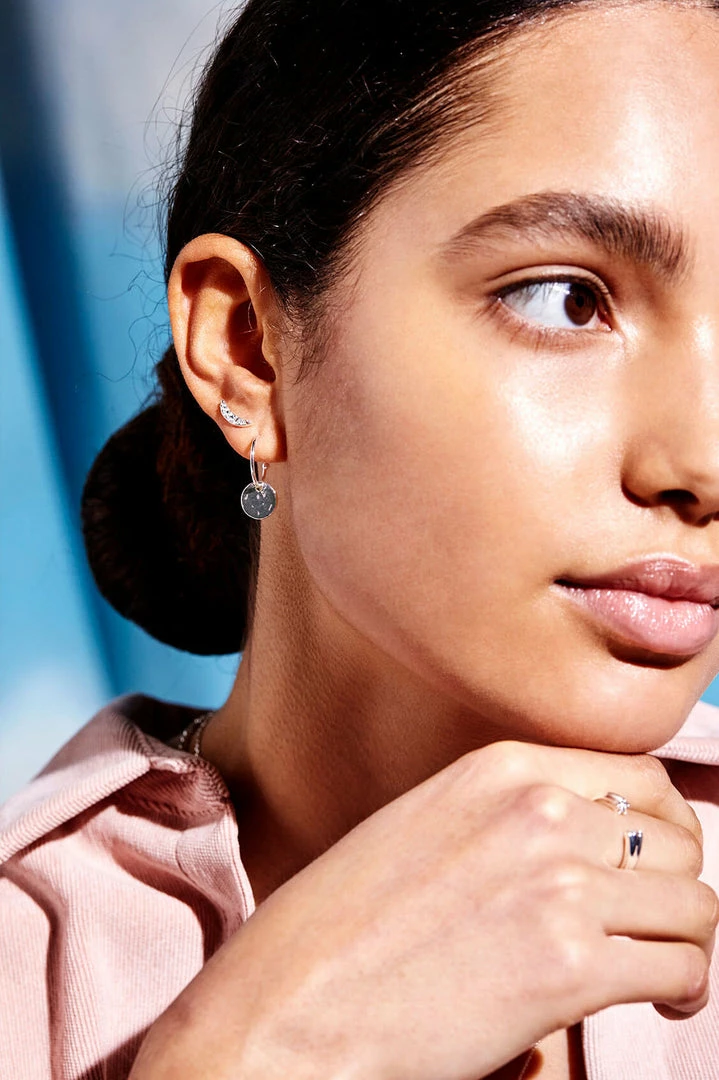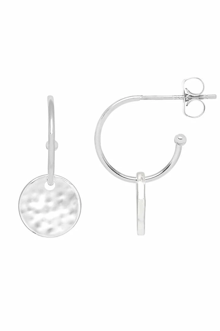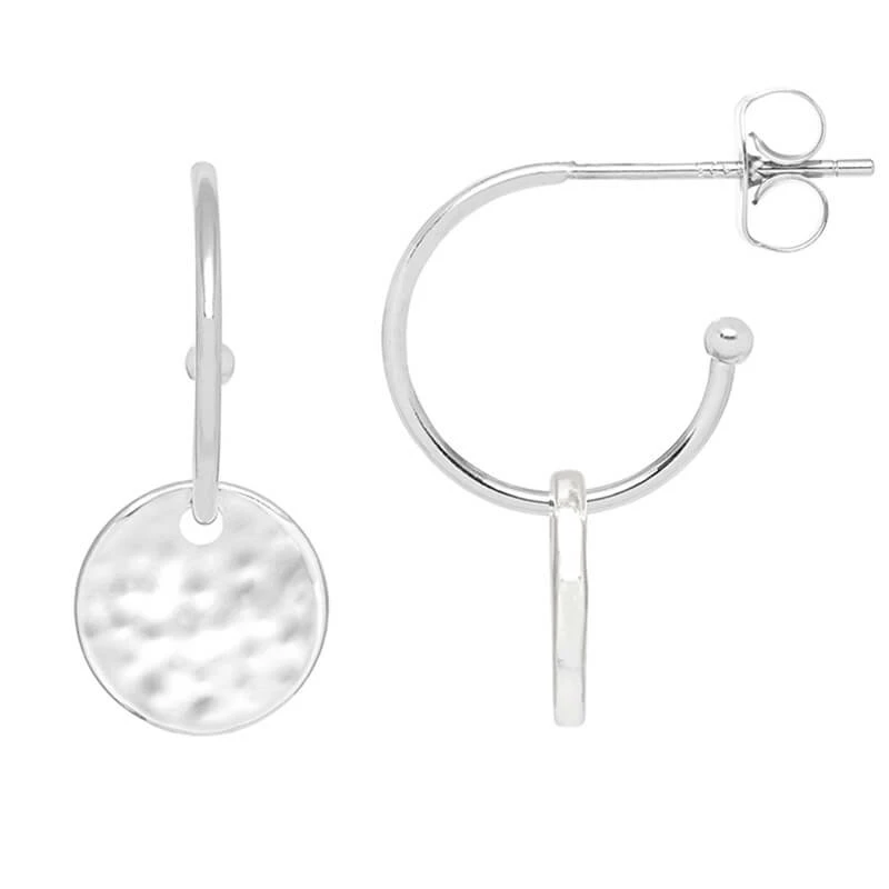 A modern twist on a classic design, these Hammered Disc Drop Hoop Earrings are the perfect minimalist accessory. Style solo, or stack alongside delicate silver pieces for a more statement look.