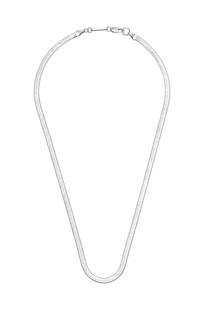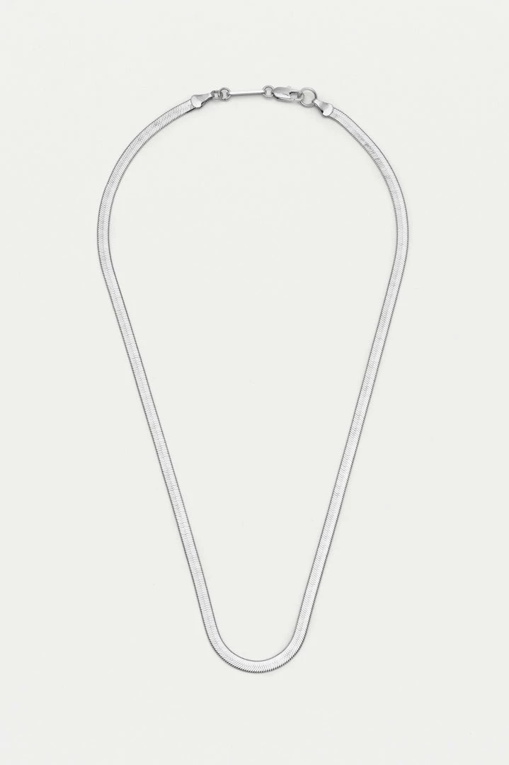 Inspired by the symmetry of nature, the Herringbone Chain Necklace features slanted chain links on a flat textured design.