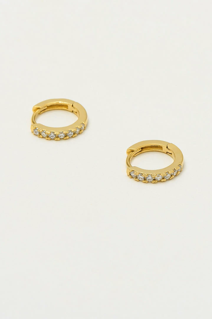 A classic hoop with white CZ, available in silver and gold plating adds effortless chic to any outfit.