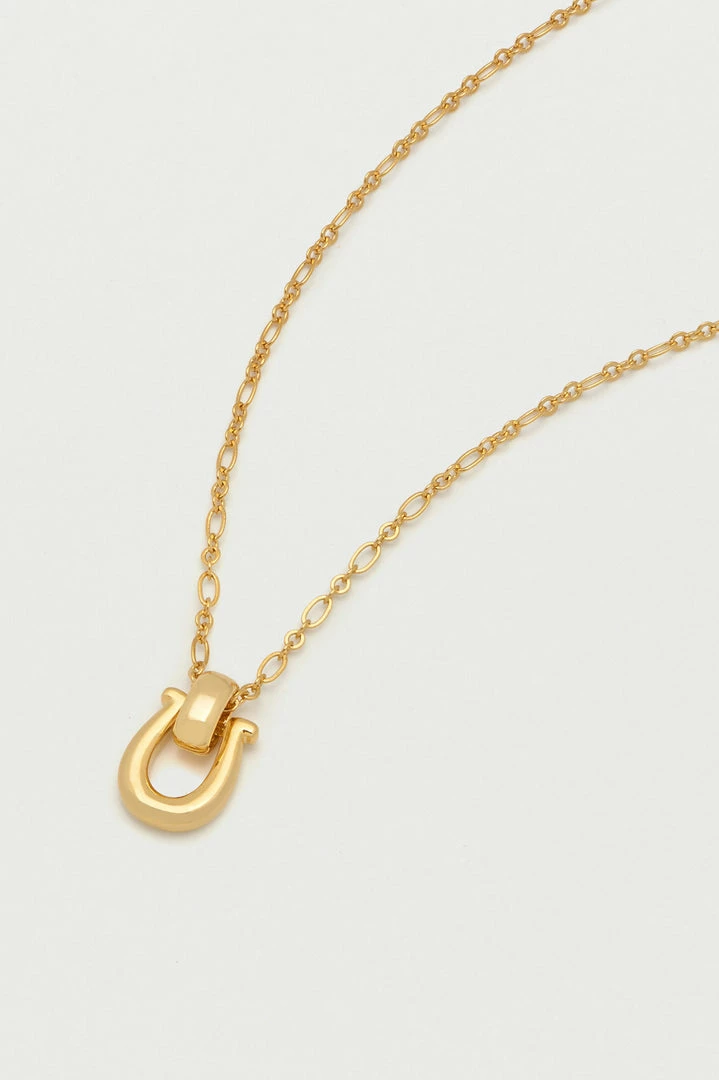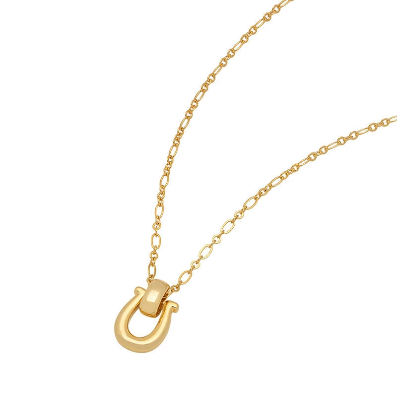 This modern twist on the horseshoe motif that has become synonymous with Estella Bartlett designs, features a knocker-style horseshoe pendant delicately placed on a fine, gold plated chain.