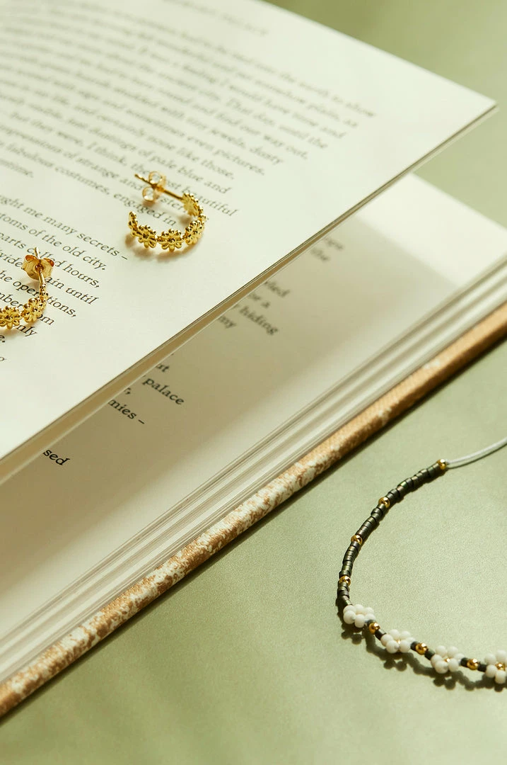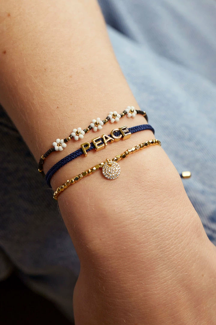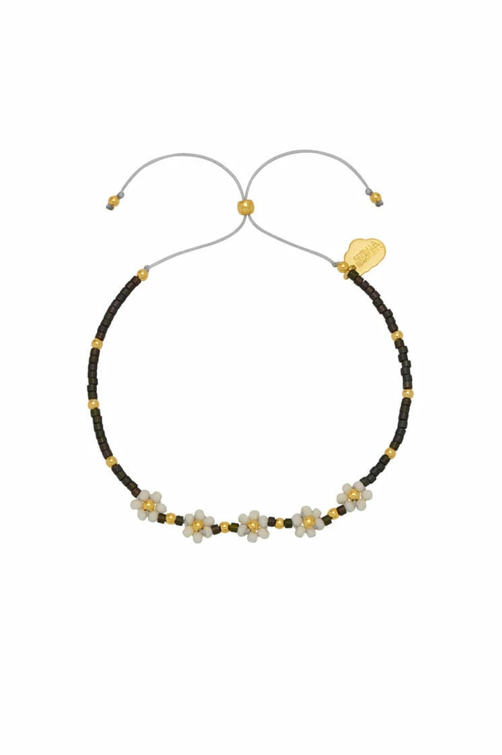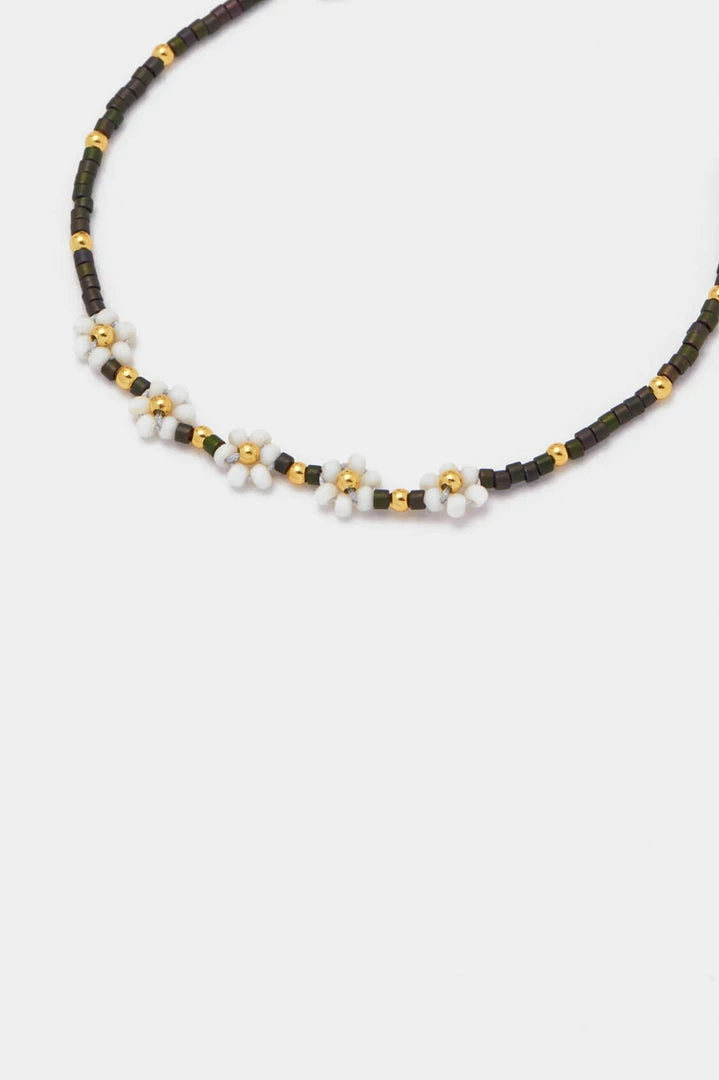 The perfect summer accessory, this Beaded Daisy Chain Bracelet features a delicate row of beaded daisies interspersed with navy and gold beads. This youthful, minimalist piece adds the perfect playful touch to any outfit.