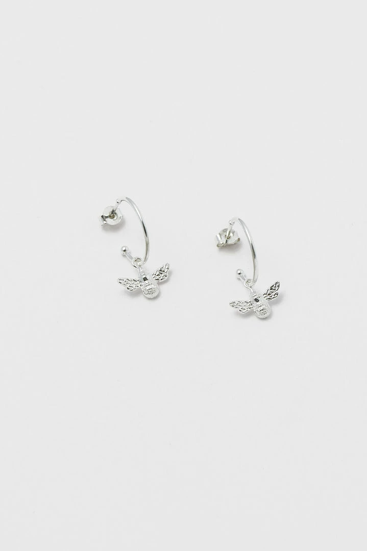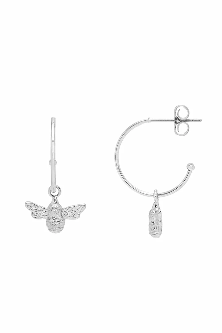These delicate silver plated drop hoop earrings, with a sweet bee charm, are a simple but beautiful addition to any outfit.