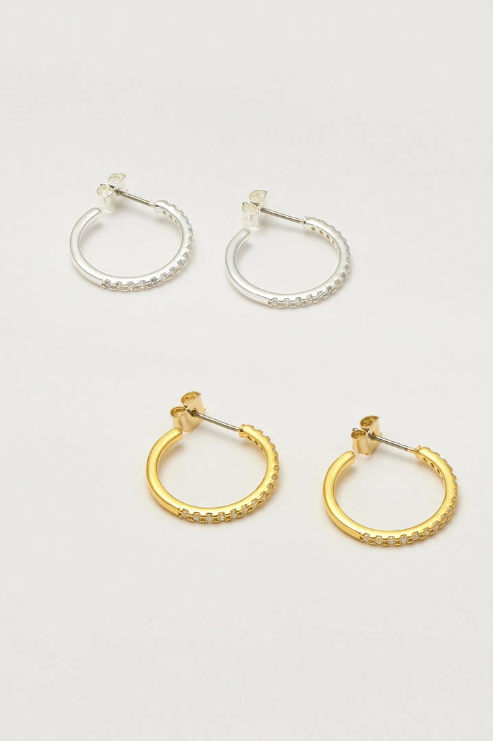A charming take on the classic hoop, set with twinkling cubic zirconia that catch the light from every angle bringing a timeless and versatile statement to your look.