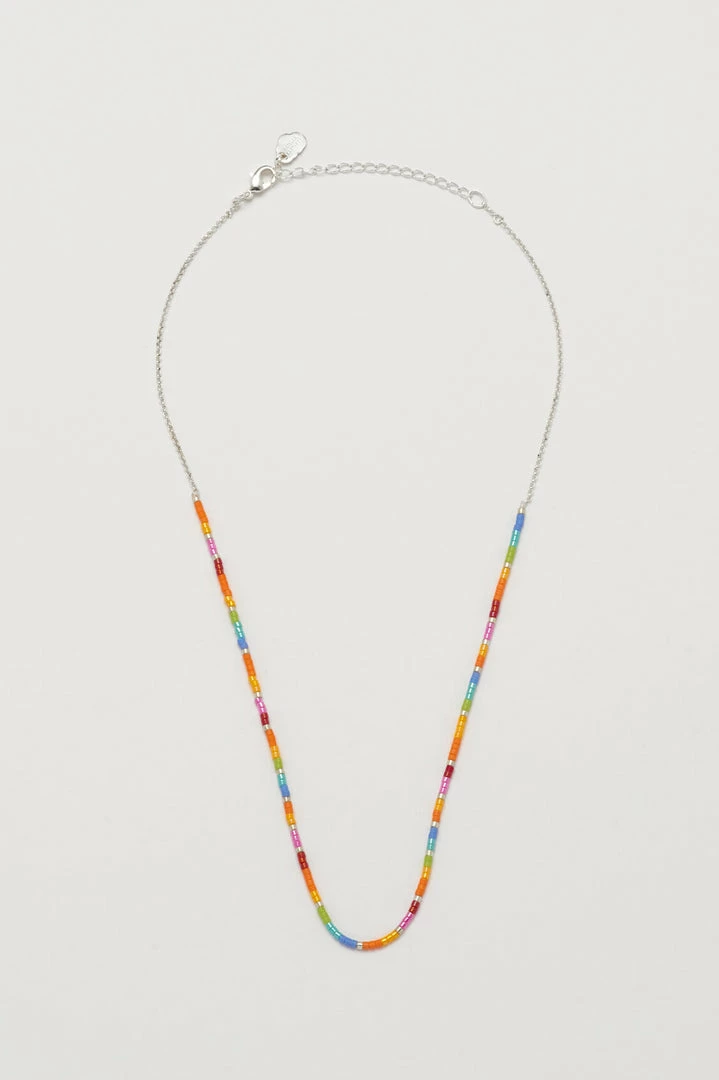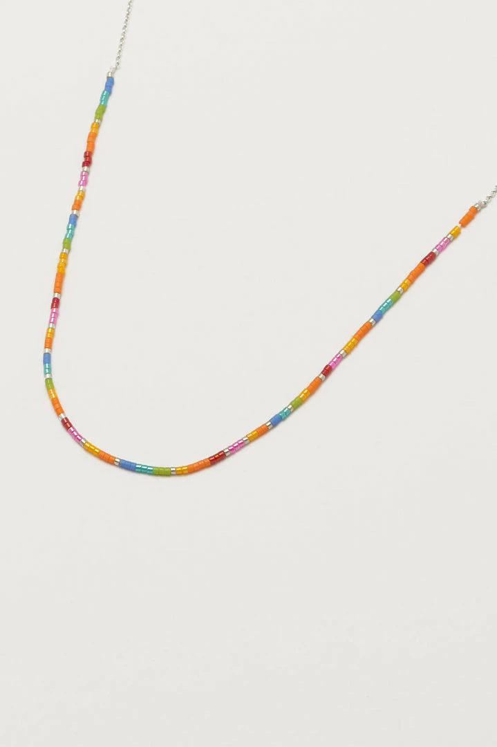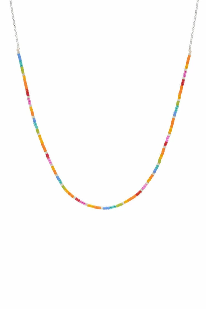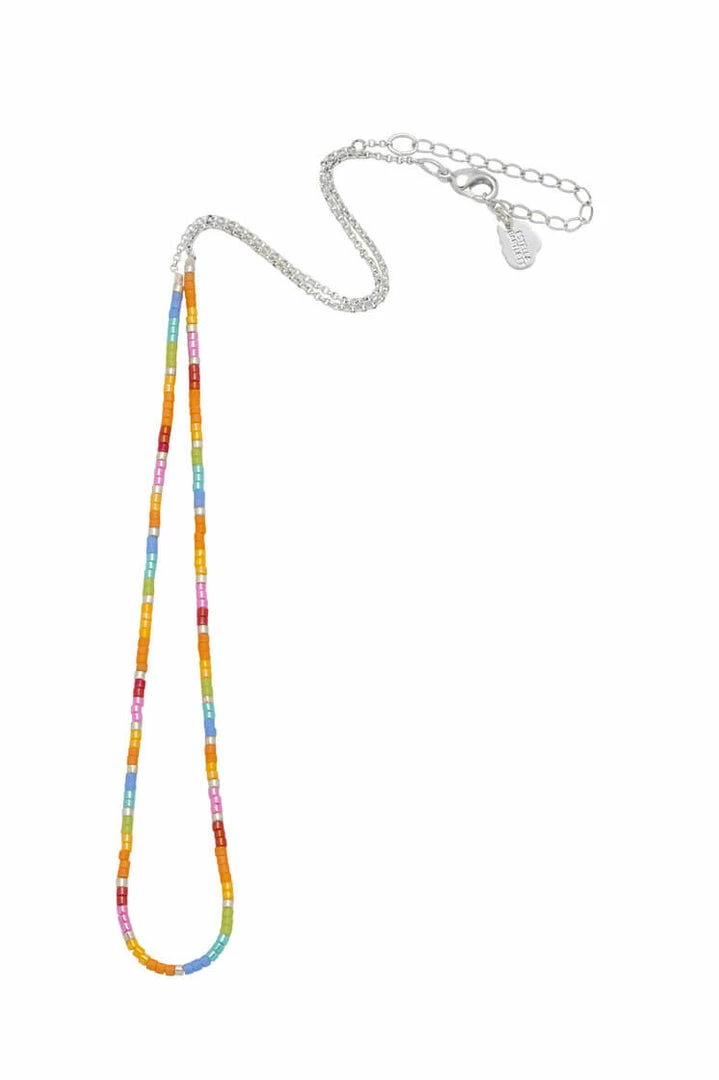 The perfect summer accessory, this Rainbow Beaded Necklace adds a subtle pop of colour to your neck. Featuring a colourful array of rainbow Miyuki beads hung from a delicate silver plated chain, this necklace is certain to brighten both your style and your day.