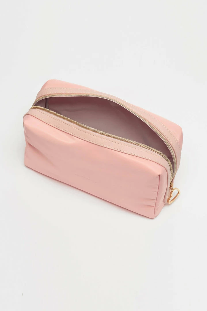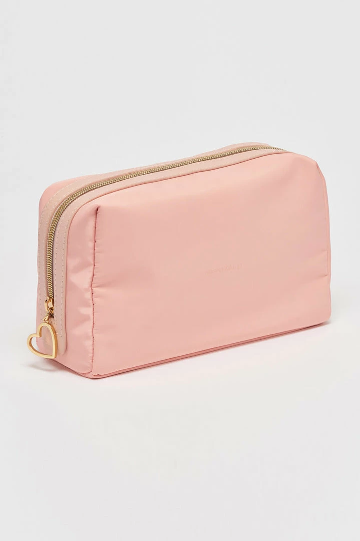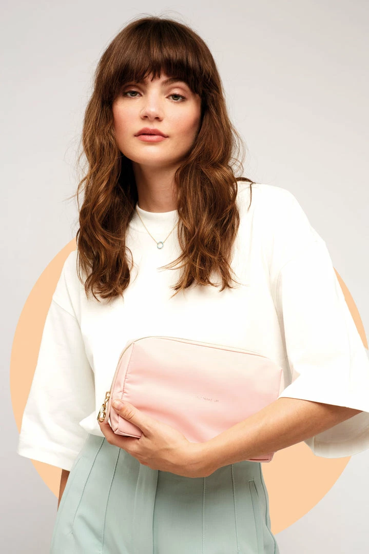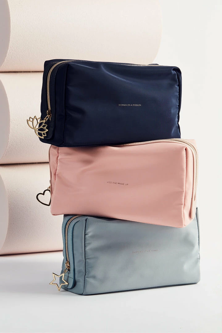 Ideal for travelling with toiletries, this pouch is both practical and stylish, and big enough for all your toiletry necessities. In blush, this pouch is inscribed with the message ‘Kiss and Make Up’.