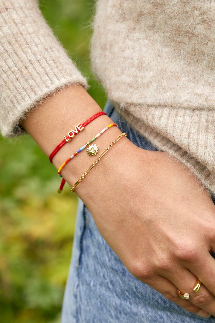 Spread the love with our newest Friendship Bracelet, perfect for gifting to a friend (or as a treat for yourself of course!). Featuring an adjustable red cord so that you can find the perfect fit and delicate gold plated beads that spell out ‘LOVE’.