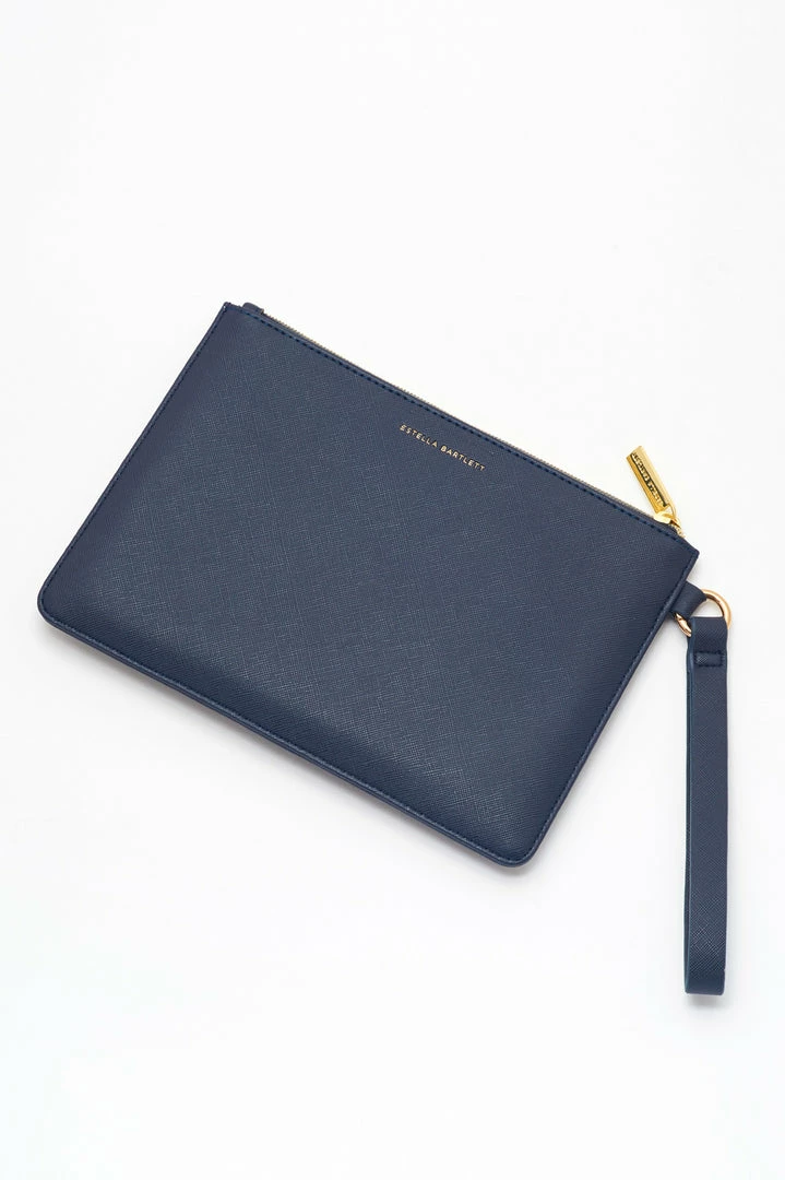 The classic Estella Bartlett Pouch has had an upgrade, with bold applique and a handy strap. Complete your look with this navy and white Lucky Eye Applique Medium Pouch, the perfect accessory to carry everything you need, everywhere you go. Made from vegan friendly leather, this pouch features an applique design with signature Estella Bartlett hardware.
