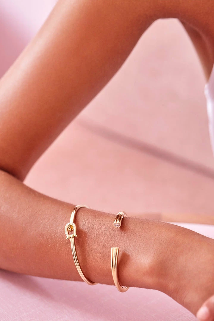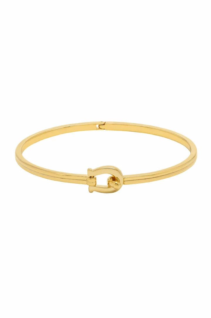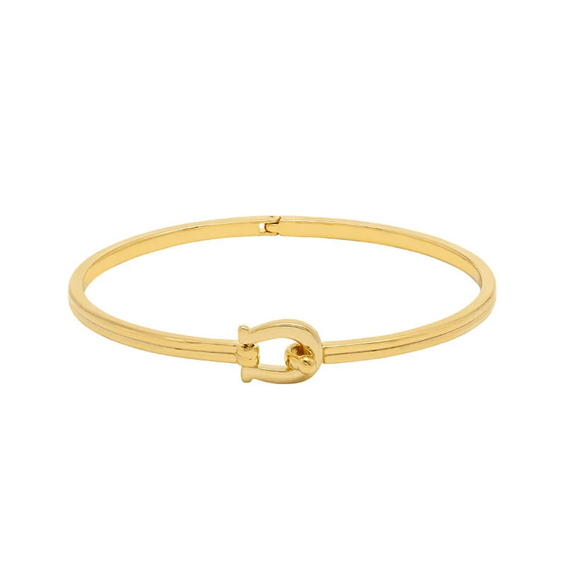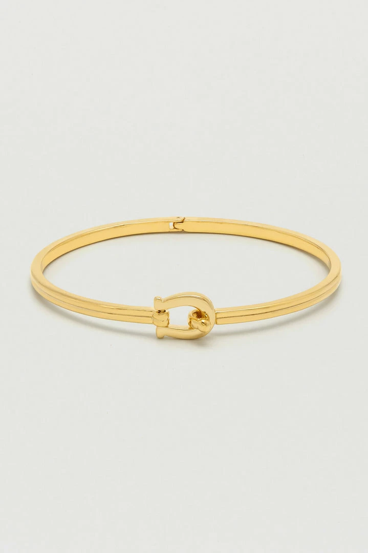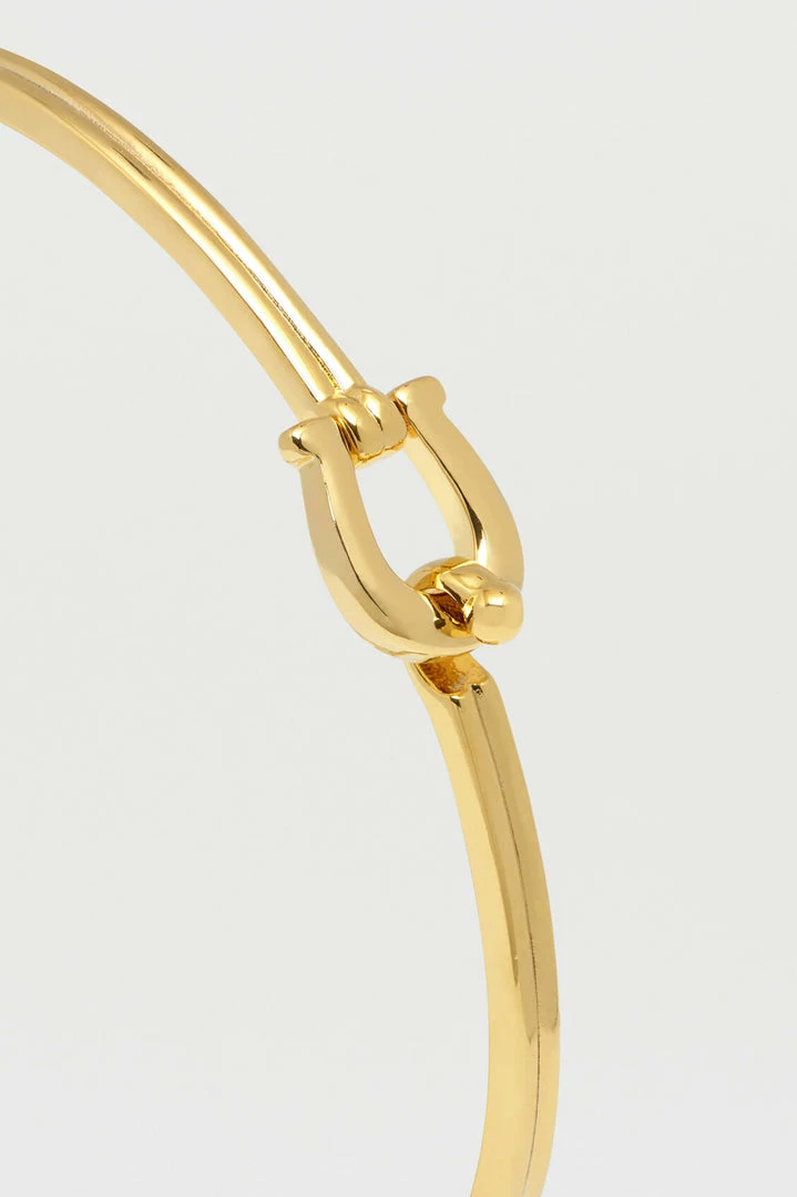 This delicate Lucky Horseshoe Hook Bangle is inspired by the horseshoe motif that has become synonymous with Estella Bartlett designs. Featuring a simple gold band and horseshoe hook fastening, this minimalist bangle is the perfect addition to any jewellery lover’s collection.