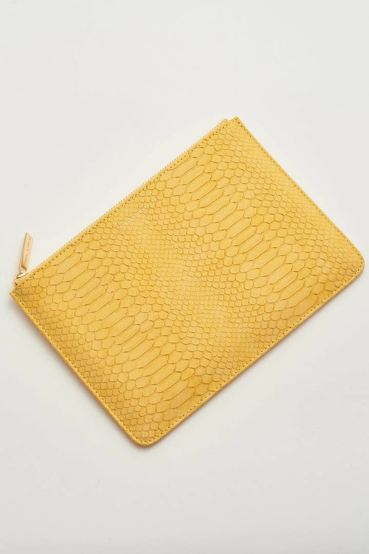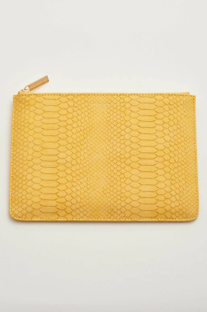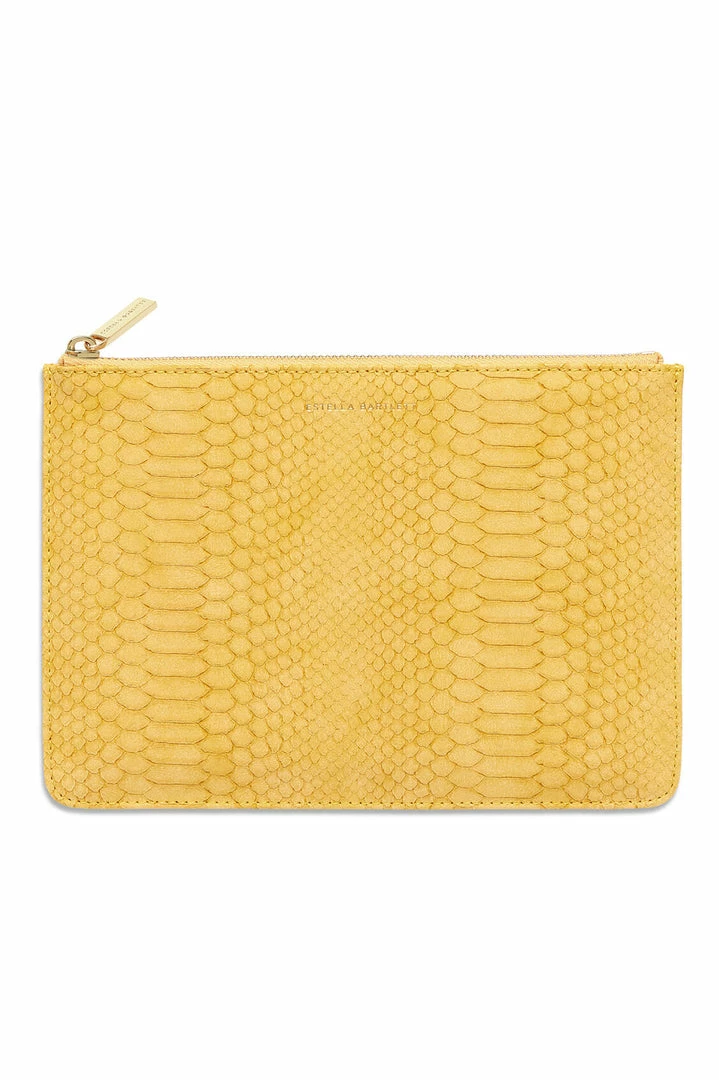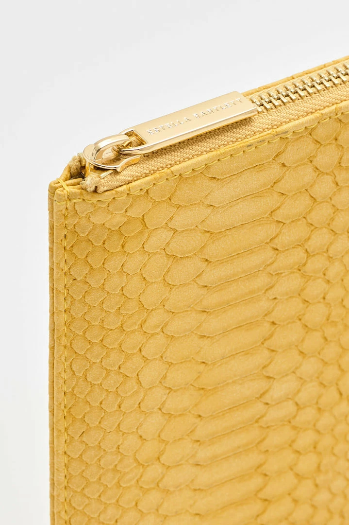 Carry it under-arm or use it to keep your essentials secure and within reach inside your bag. The slim style is finished in mustard snake print and signature Estella Bartlett hardware.