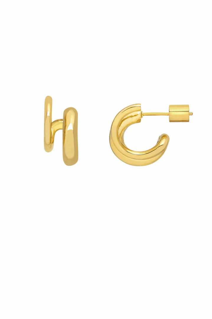 Two hoops in one- and no extra piercings needed! Transform your look in just one simple step with these Minimalist Double Hoop Illusion Earrings.