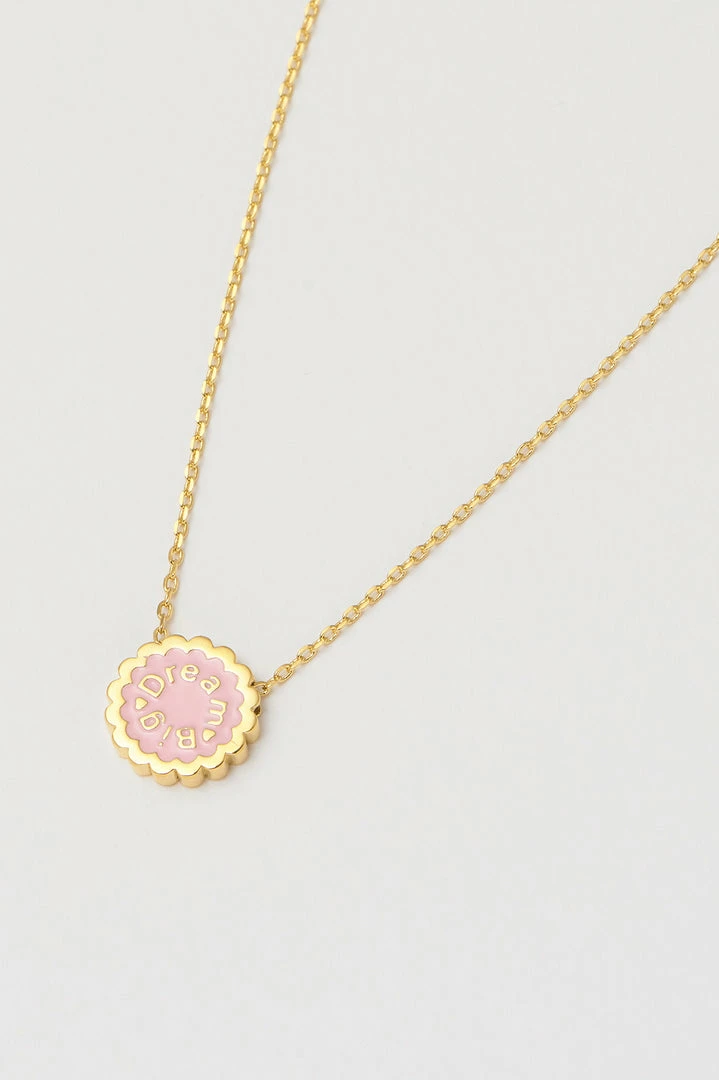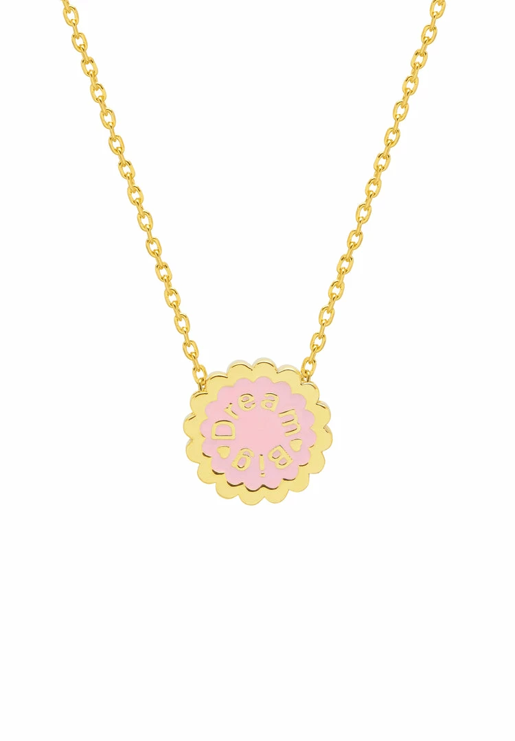 Add a pop of colour with our Dream Big Enamel Pendant. Featuring a bubblegum pink flower inspired charm, this bold piece will be a go-to summer favourite.