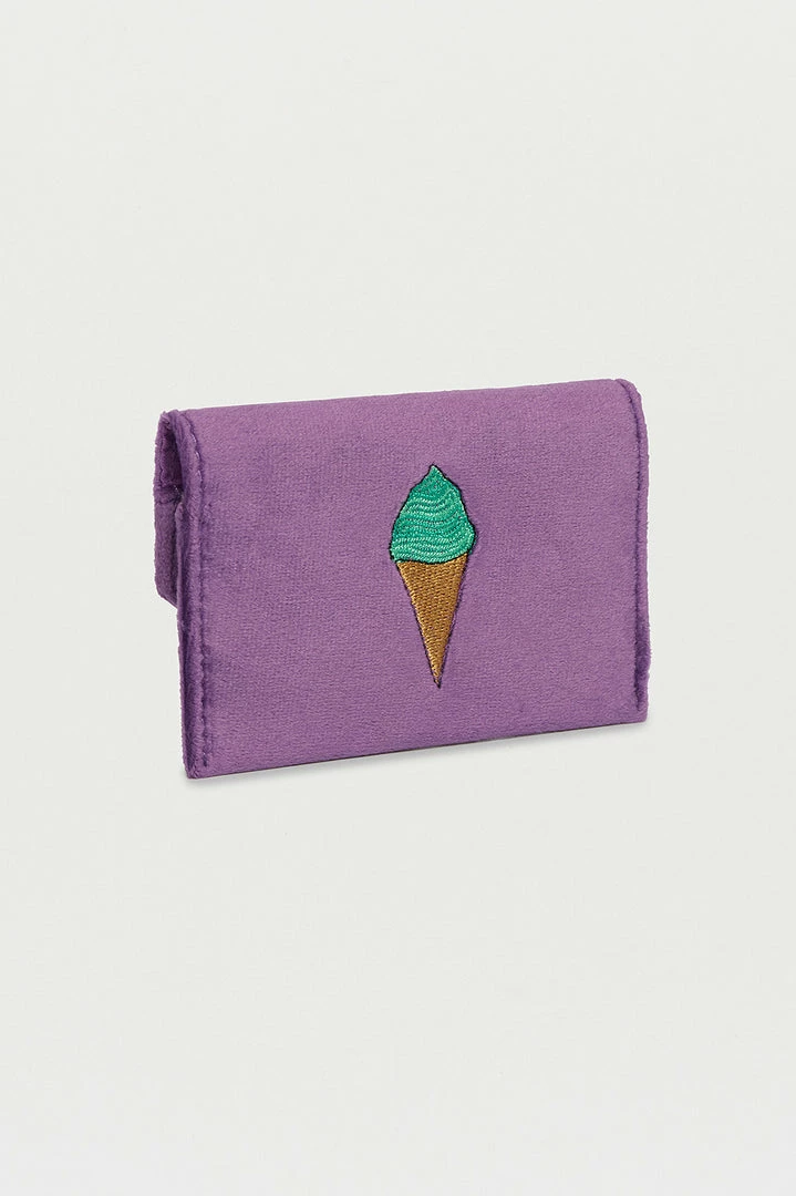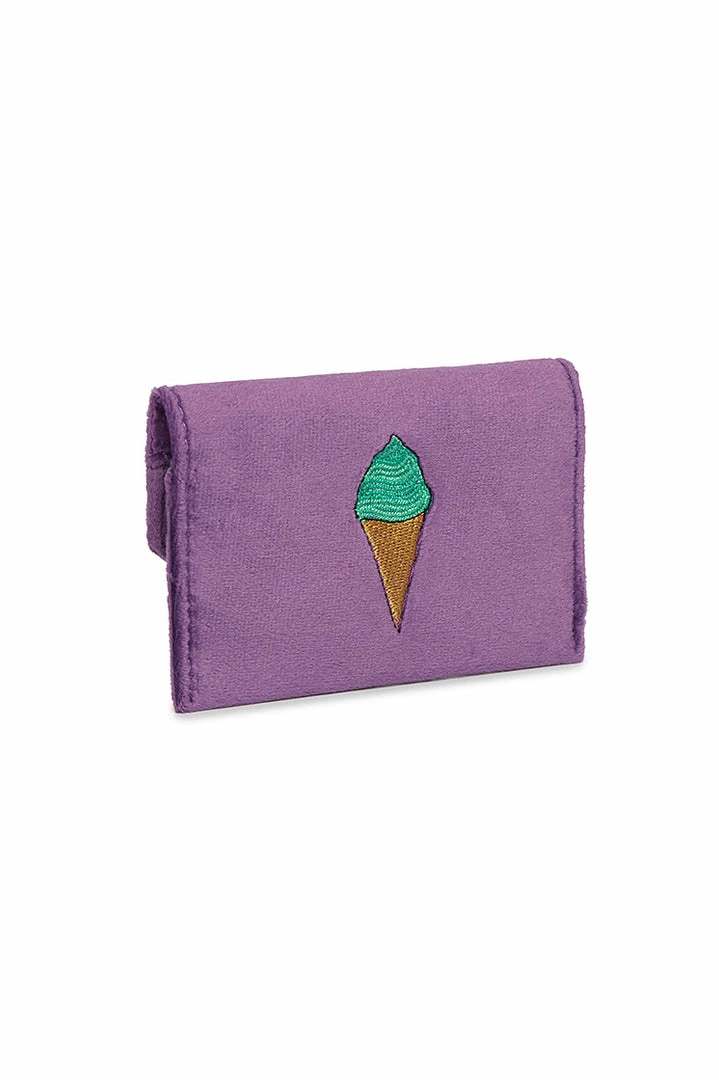 A plush and luxurious card holder to hold and organise all your cards. This update of our original Envelope Card Holder, is embroidered with an ice cream patch, making it a playful accessory.