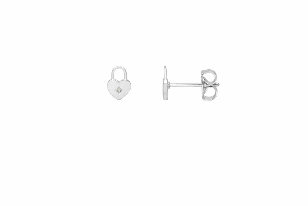 A stud version of our Heart Padlock Earrings to a layered look. The heart padlock charm creates a playful yet elegant look. Gift to someone who you hold close to your heart or to yourself to wear your heart on your eyes.