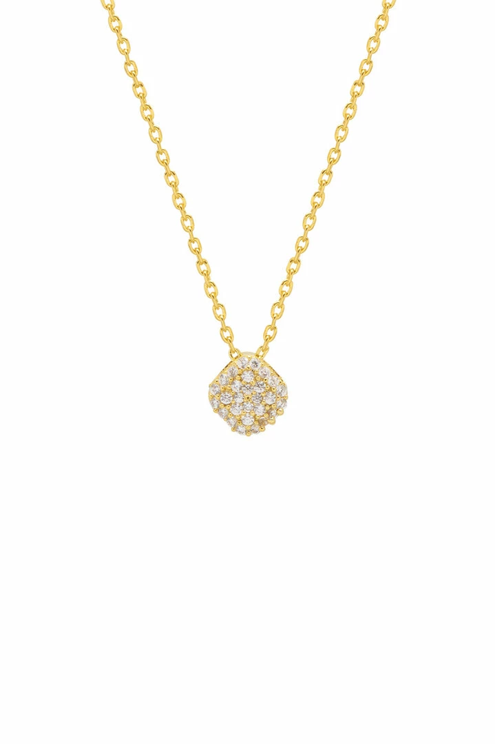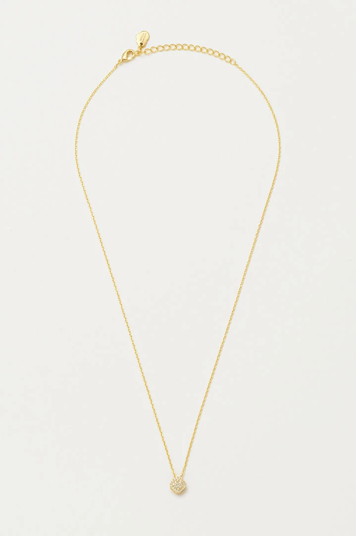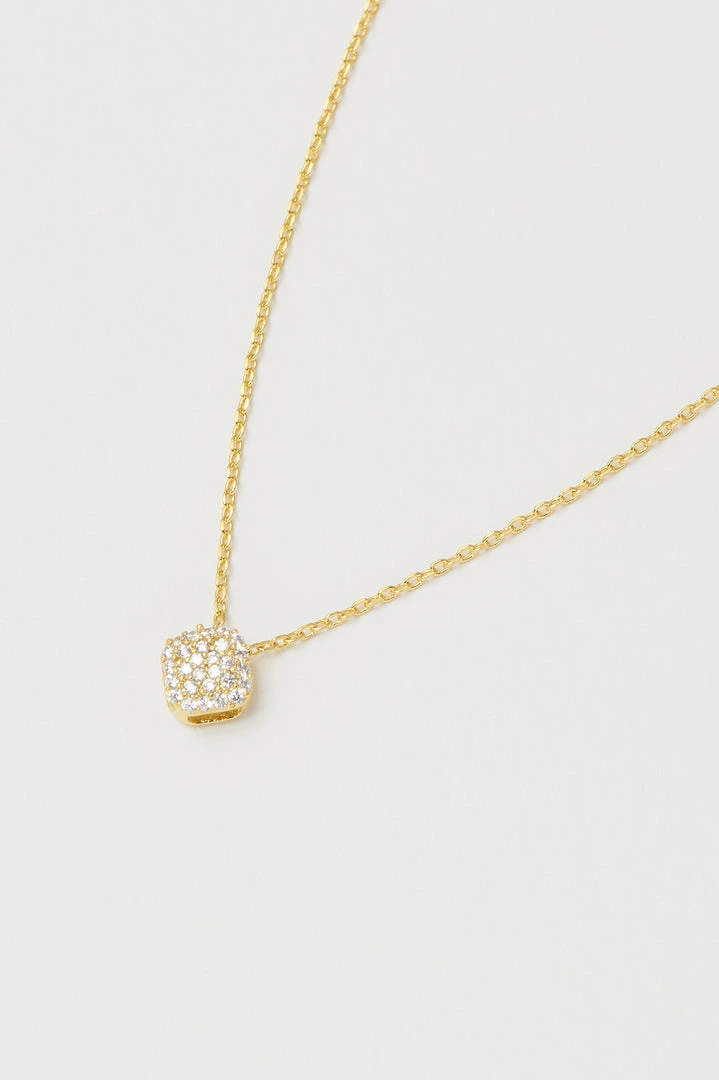 The elegant pendant to add to your collection. Featuring a soft diamond shaped charm covered in CZ stones, this timeless piece can be worn alone for a simple, minimal look or keep on layering for maximilist chic.
