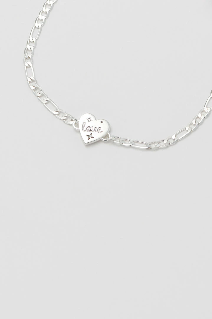 Inspired by the classic retro chain, this bracelet will be your new go-to. The mix of silver plated chain links gives it a timeless look and with the addition of the heart shaped charm, this is a piece you will love forever.