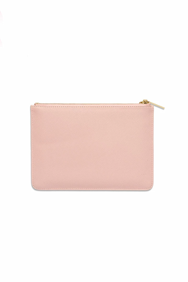 Carry it under-arm or use it to keep your essentials secure and within reach inside your bag. The slim style is finished in a subtle blush and comes with an open heart charm.