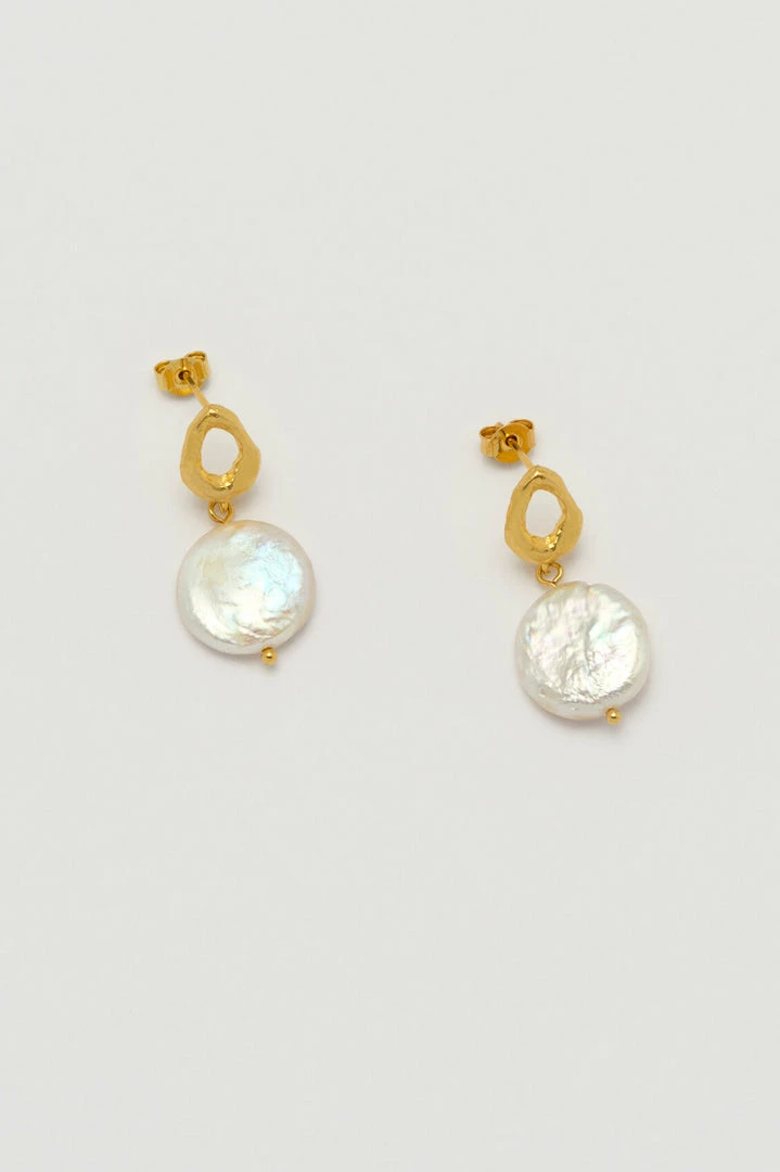 This statement pair of Organic Pearl Drop Earrings are both bold and versatile. Combining both feminine and modern designs completed with an elegant, natural pearl, these earrings will add movement and texture to your everday looks.