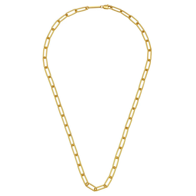 A simple, delicate chain necklace makes for the perfect layering piece and our Paperclip Link Chain Necklace is no exception.