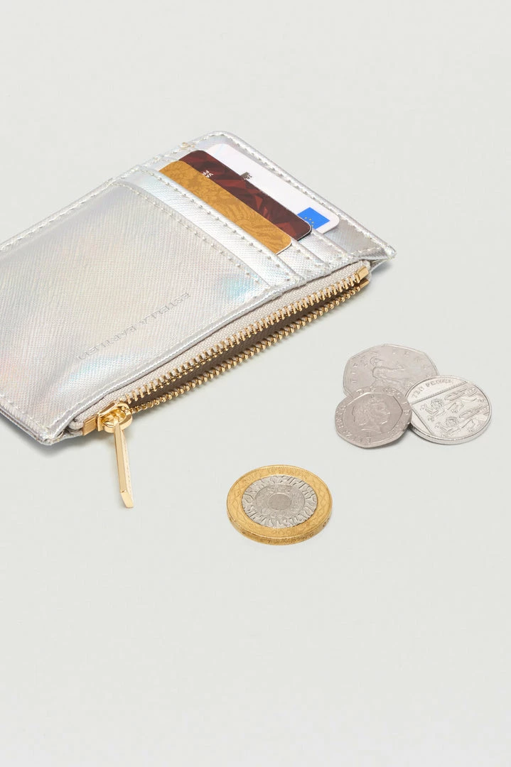 Carry all of your essentials in one place. The ideal size to slip into your pocket, clutch or even go bag free. Featuring four slots for your most used cards and a zip compartment to keep your change and receipts. With signature Estella Bartlett hardware and finished in a playful iridescent shade.