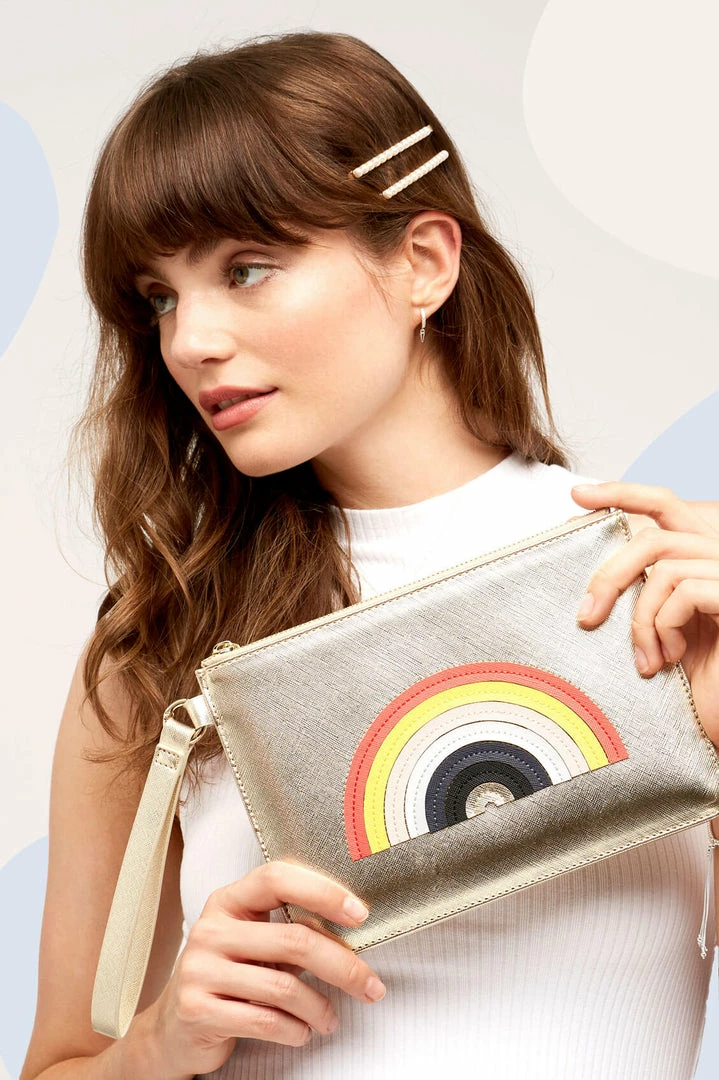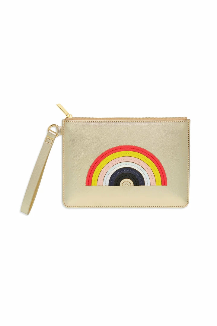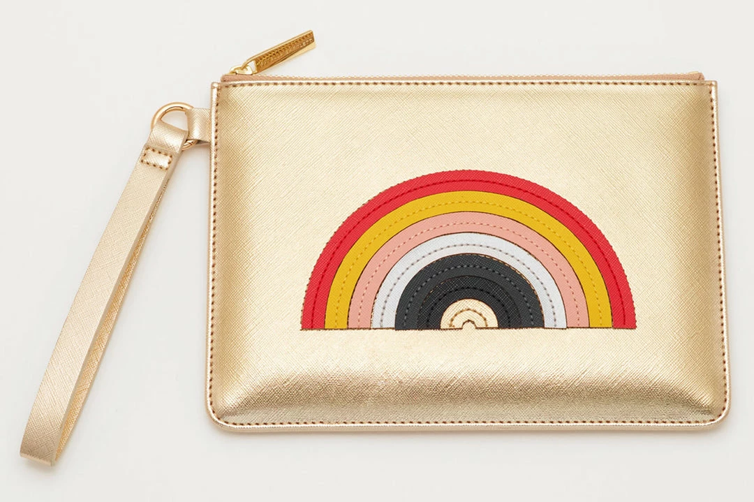 The classic Estella Bartlett Pouch has had an upgrade, with bold applique and a handy strap. Complete your look with this gold Rainbow Applique Medium Pouch, the perfect accessory to carry everything you need, everywhere you go. Made from vegan friendly leather, this pouch features an applique design with signature Estella Bartlett hardware.